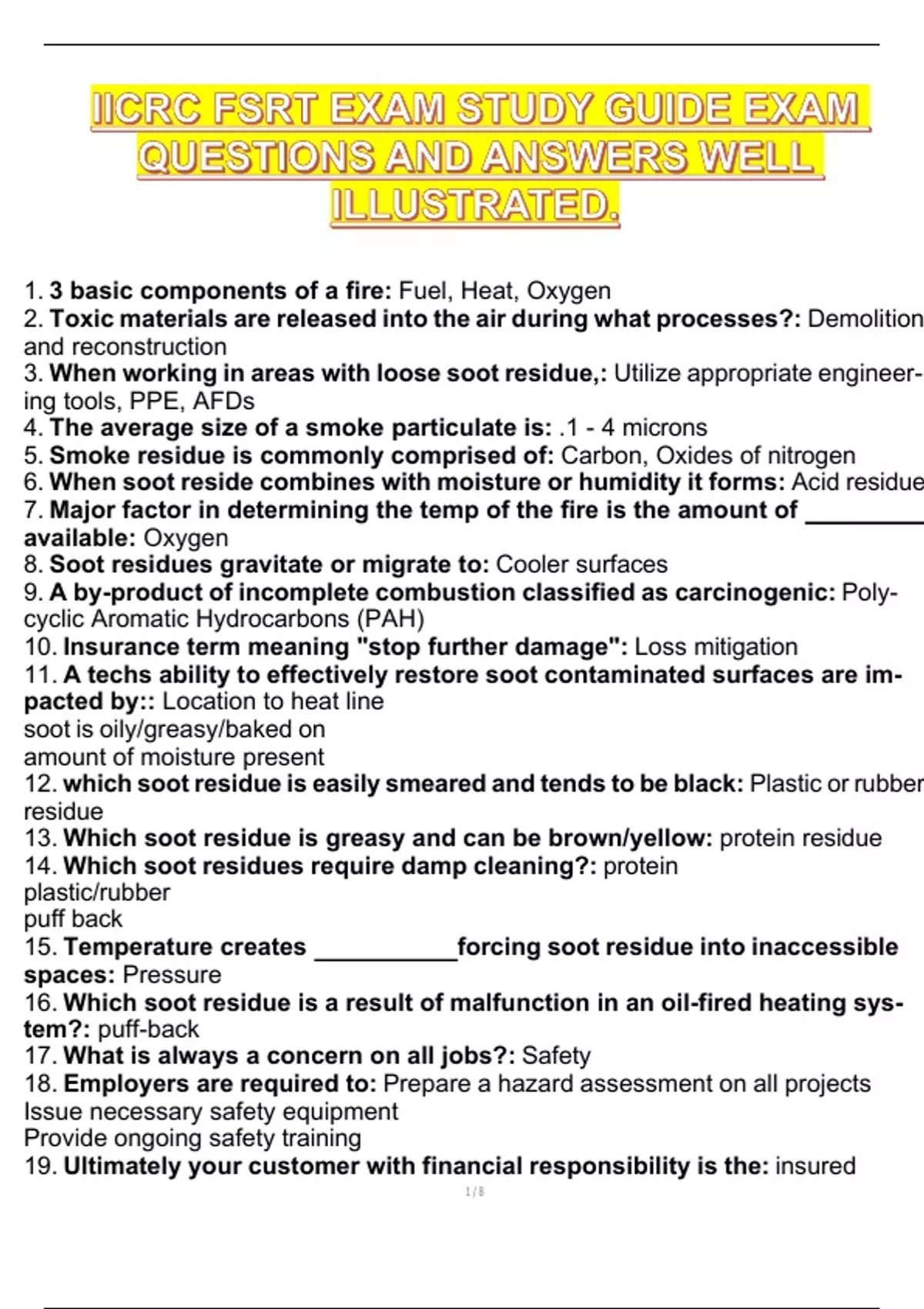 IICRC FSRT EXAM STUDY GUIDE EXAM QUESTIONS AND ANSWERS WELL ILLUSTRATED.