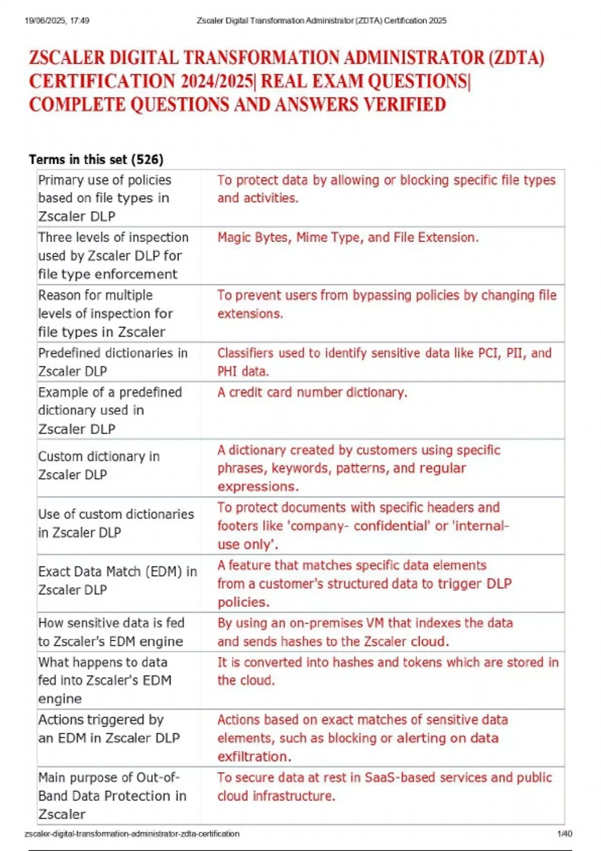 ZSCALER DIGITAL TRANSFORMATION ADMINISTRATOR (ZDTA) CERTIFICATION 2025/2026 ZSCALER EDU 200 - ESSENTIALS - ZDTA STUDY SET 2025/2026| REAL EXAM ZDTA 2025/2026| REAL EXAM QUESTIONS| COMPLETE QUESTIONS AND ANSWERS VERIFIED