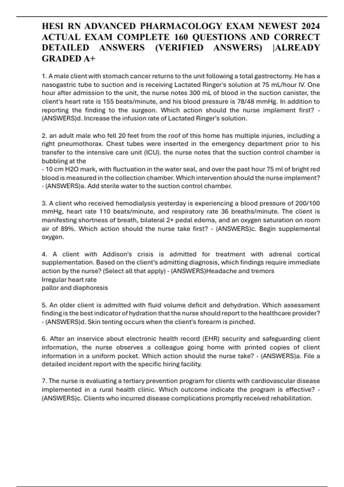 HESI RN ADVANCED PHARMACOLOGY EXAM NEWEST 2024 ACTUAL EXAM COMPLETE 160 QUESTIONS AND CORRECT DETAILED ANSWERS (VERIFIED ANSWERS) |ALREADY GRADED A+