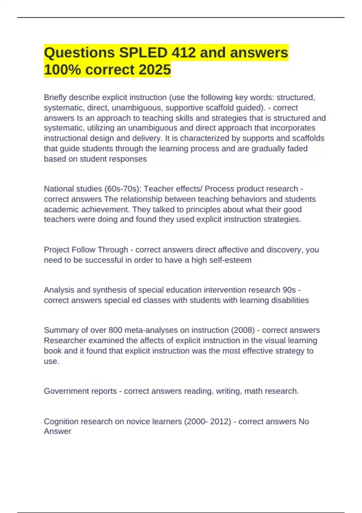 Questions SPLED 412 and answers 100% correct 2025