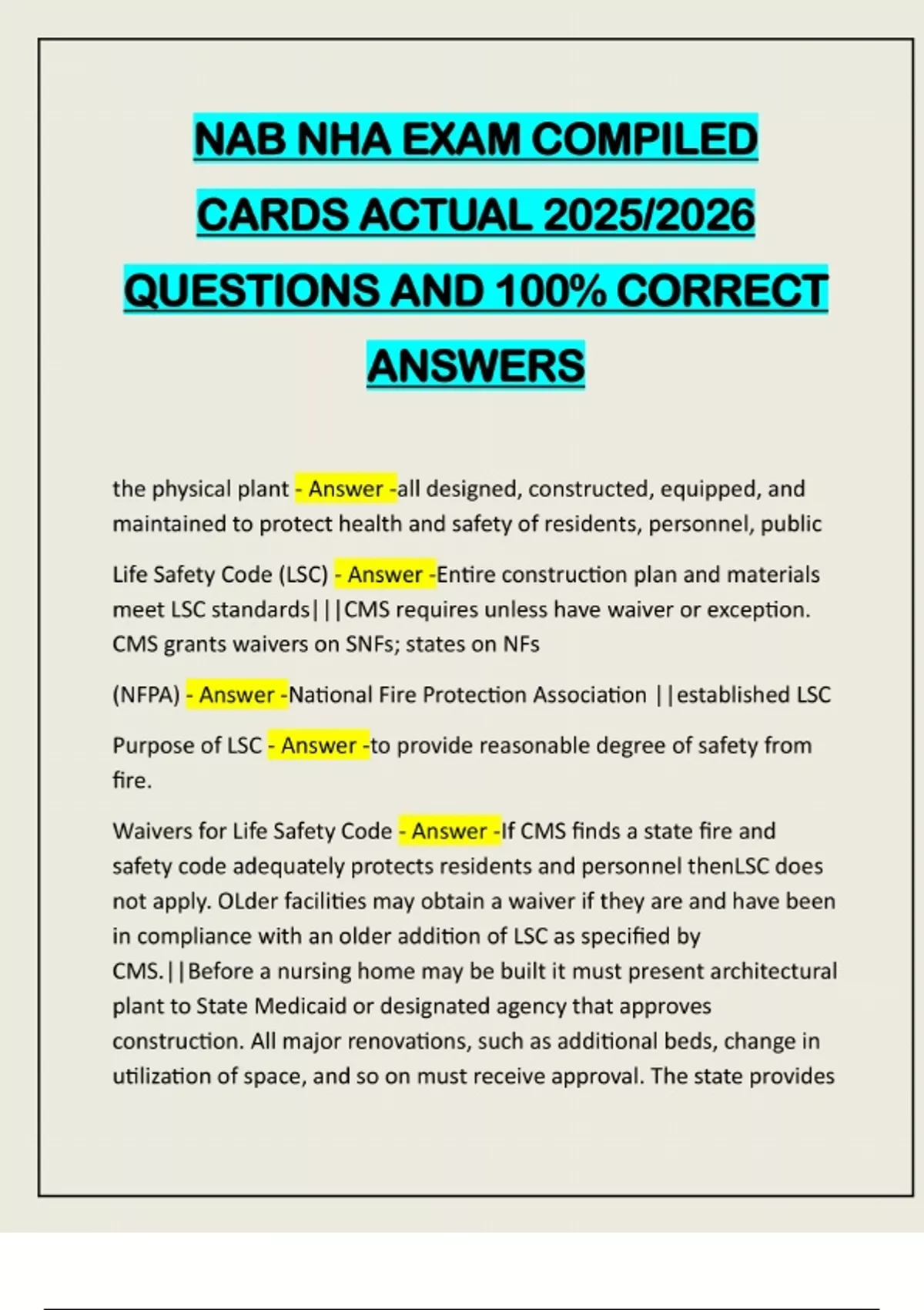 BUNDLE FOR NAB NHA EXAMS 2025/2026 Q&A 100% PASS