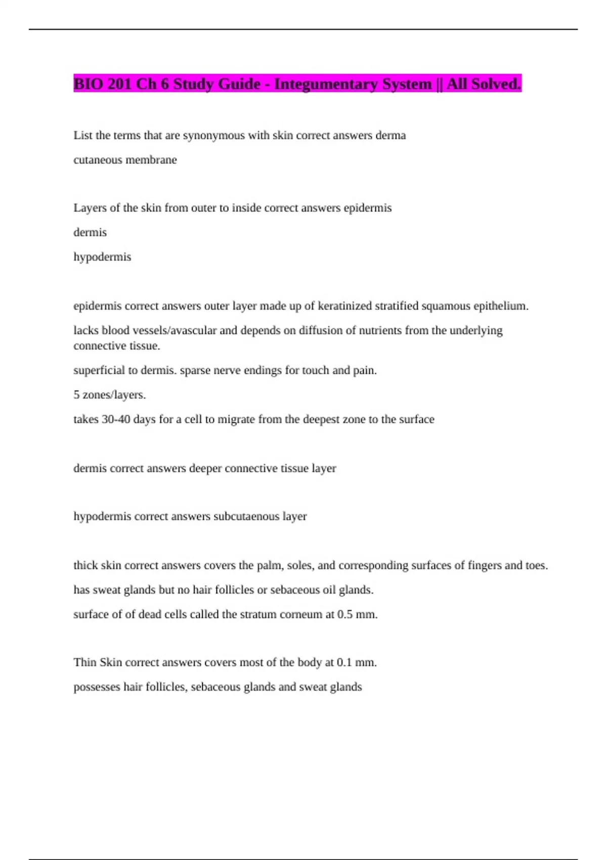 BIO 201 Ch 6 Study Guide - Integumentary System || All Solved.