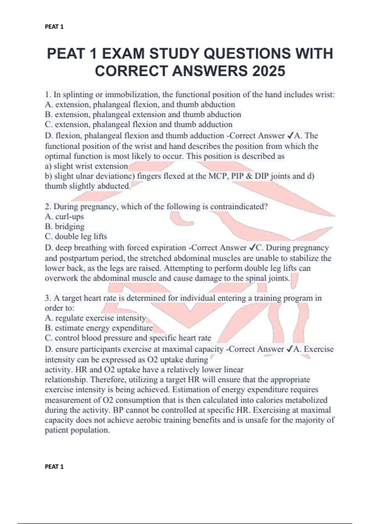 Package Deal For PEAT 1, 2, 3, and 4 EXAM STUDY GUIDE QUESTIONS AND ANSWERS GRADED A+ 2025