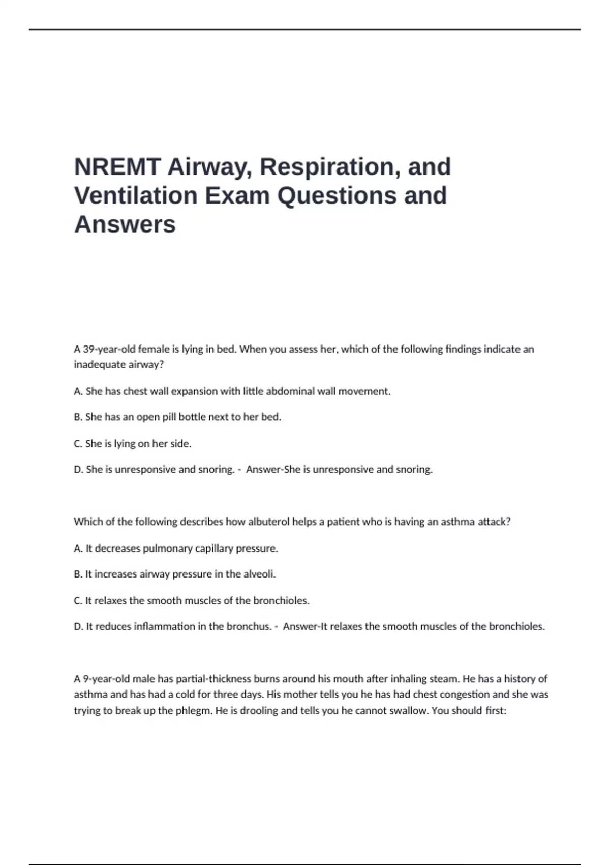 NREMT Airway, Respiration, and Ventilation Exam Questions and Answers,NREMT EXAM QUESTIONS AND SOLUTIONS (AIRWAY, RESPIRATION,& VENTILATION),NREMT Test Questions and Answers - Everything you need to know,NREMT 2025 Practice Questions and Answers- Future EMT Group,NREMT Crash Course Test Questions and Answers,