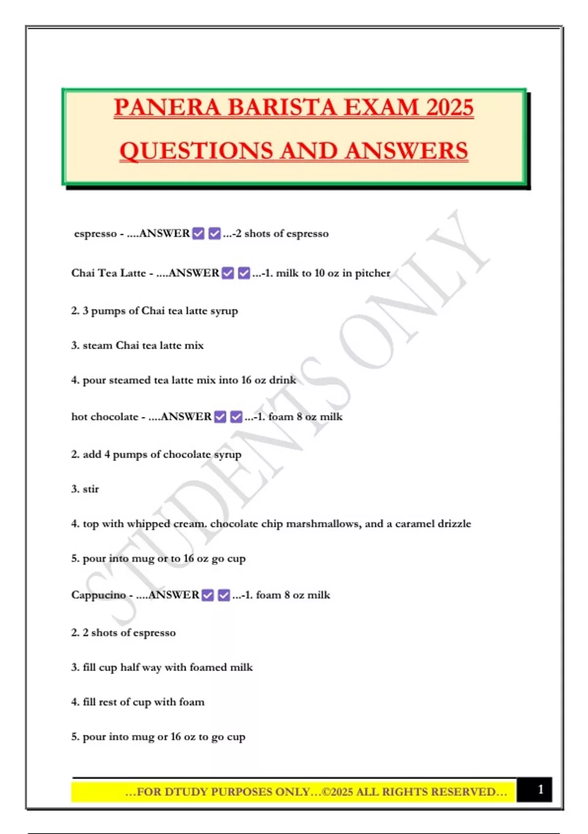 TEST: BARISTA (PANERA) 2025 QUESTIONS AND ANSWERS
