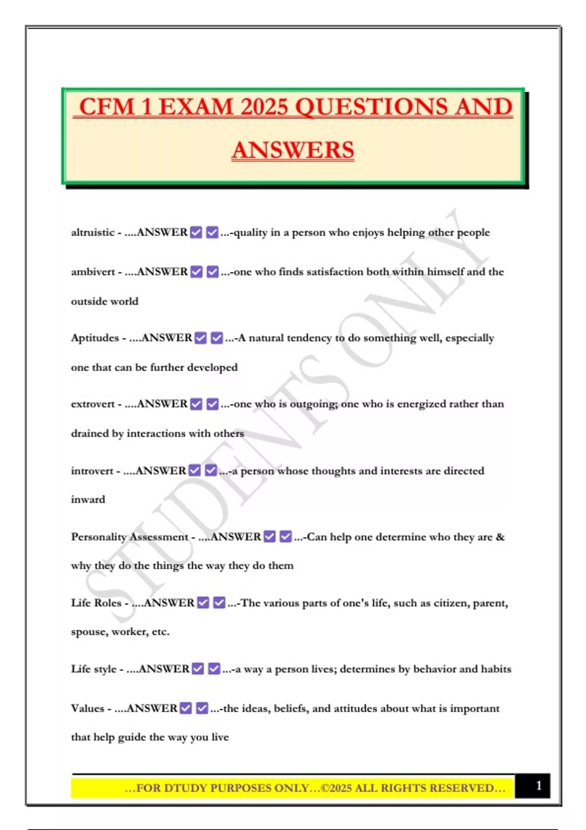 CFM 1 EXAM 2025 QUESTIONS AND ANSWERS