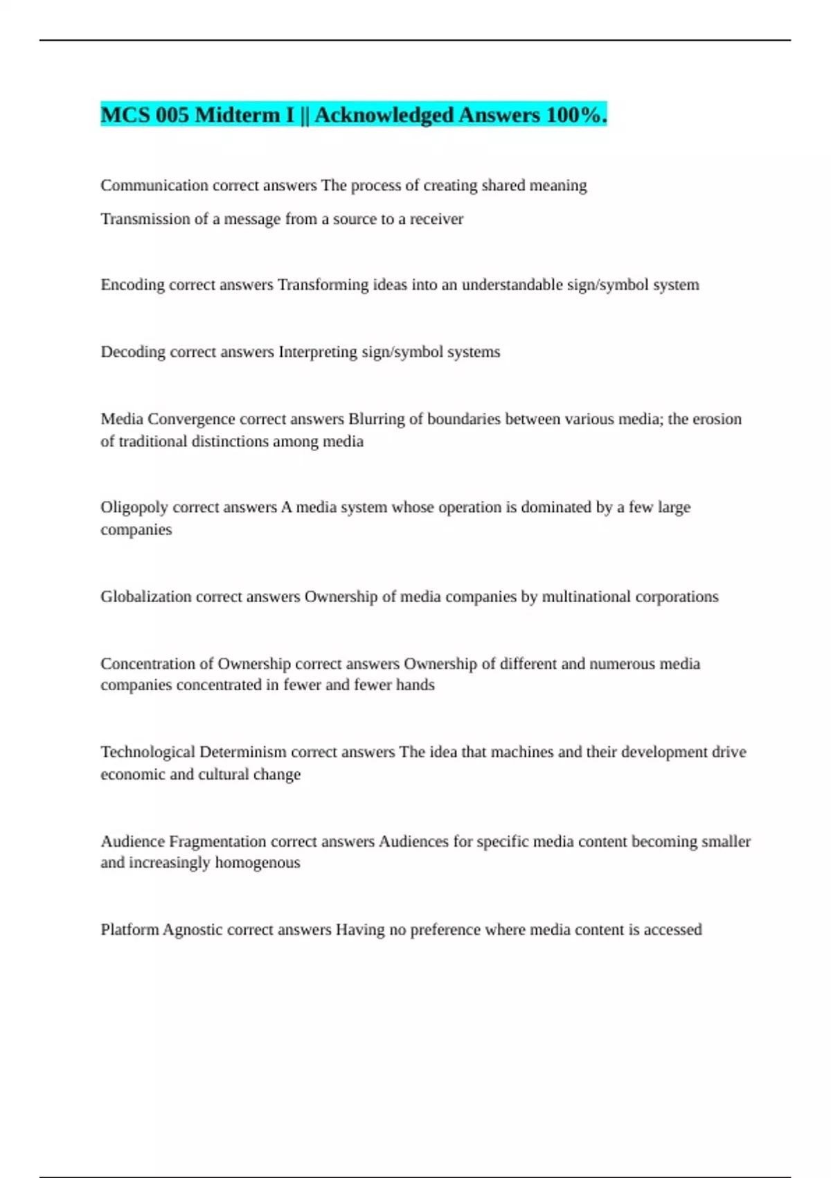MCS 005: Final Exam || with Certified Answers. MCS 005 Midterm I || Acknowledged Answers 100%. MCS 005 test 1 || 100% Verified Solutions. MCS 005 Test #1 || 100% Verified Answers. MCS 005 || Solved Correctly.