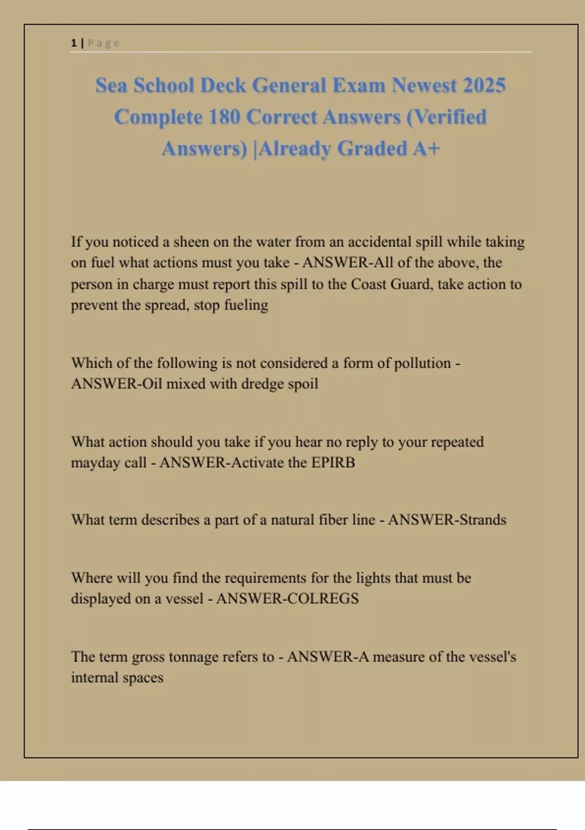 Sea School BUNDLED EXAMS Newest 2025 Complete Correct Answers (Verified Answers) |Already Graded A+