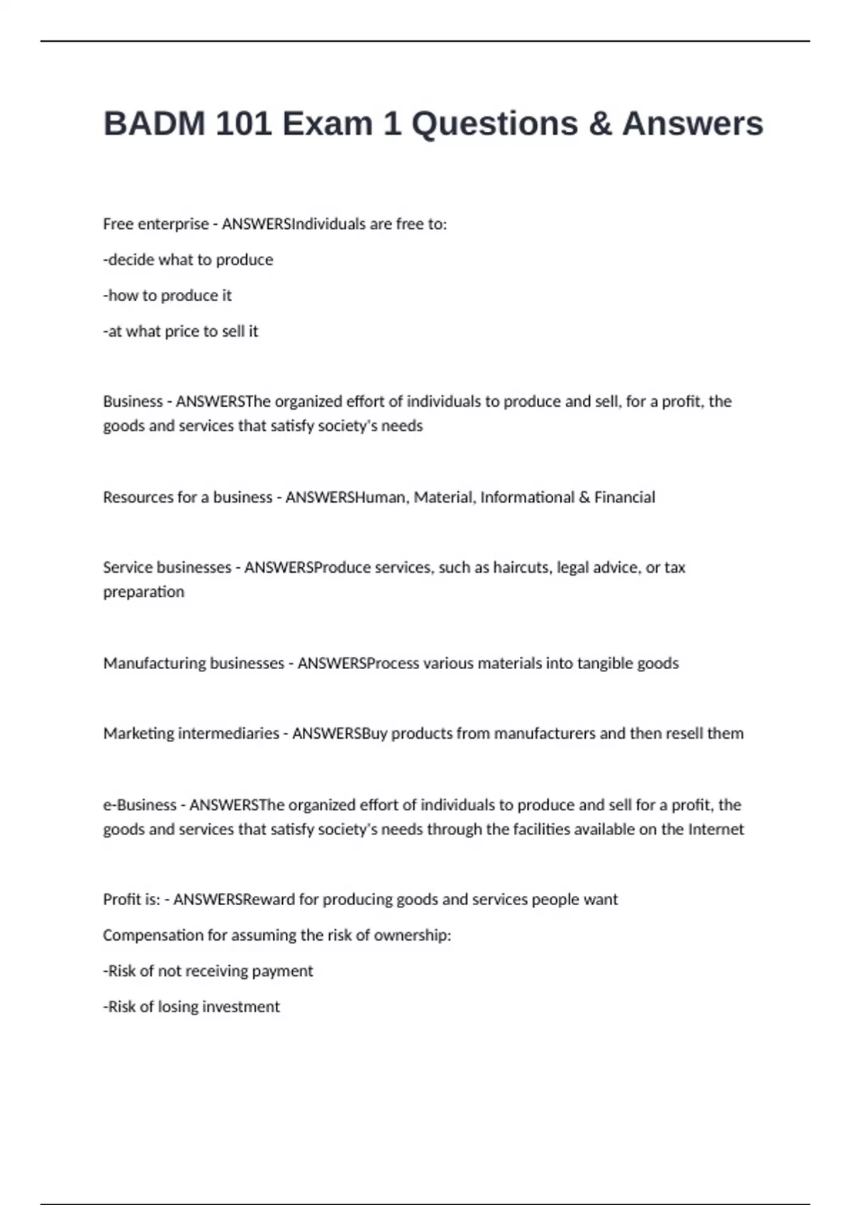BADM 101 FINAL EXAM QUESTIONS & ANSWERS