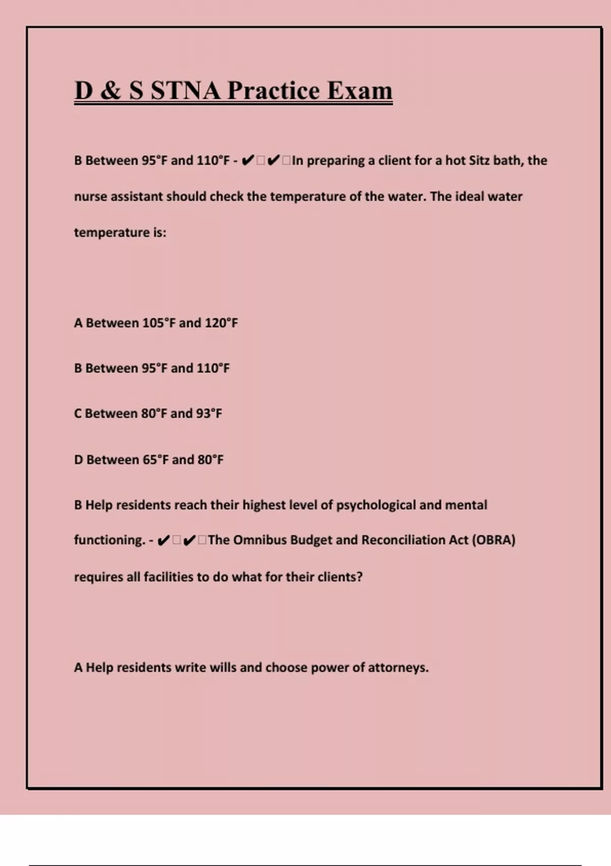 D & S STNA Practice Examination With Correct Expert Solutions