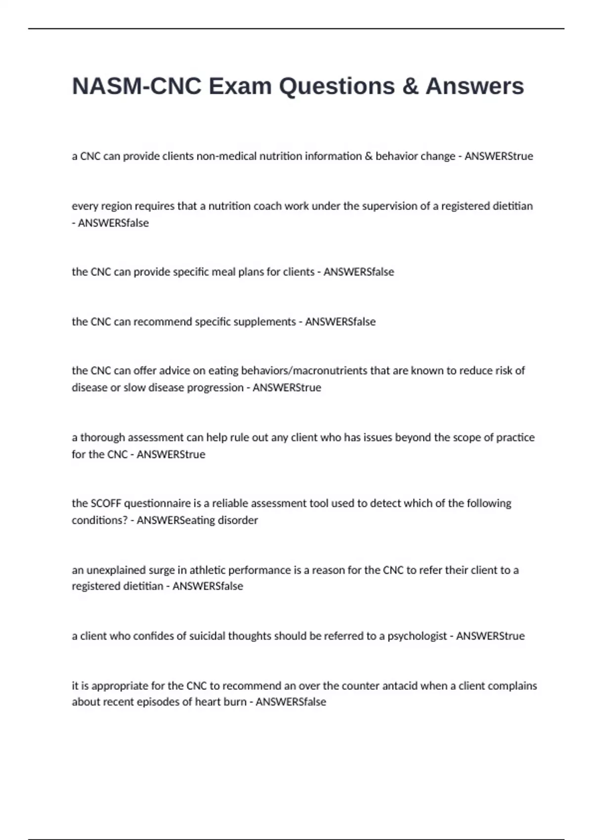 NASM-CNC Exam Questions & Answers