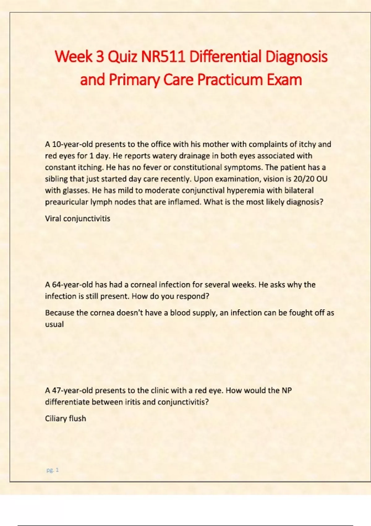 2025 NR511 Exam All quiz Differential Diagnosis and Primary Care: 2025/ 2026 Complete Study Guide Solutions Highest Grade A+ Rewarded.