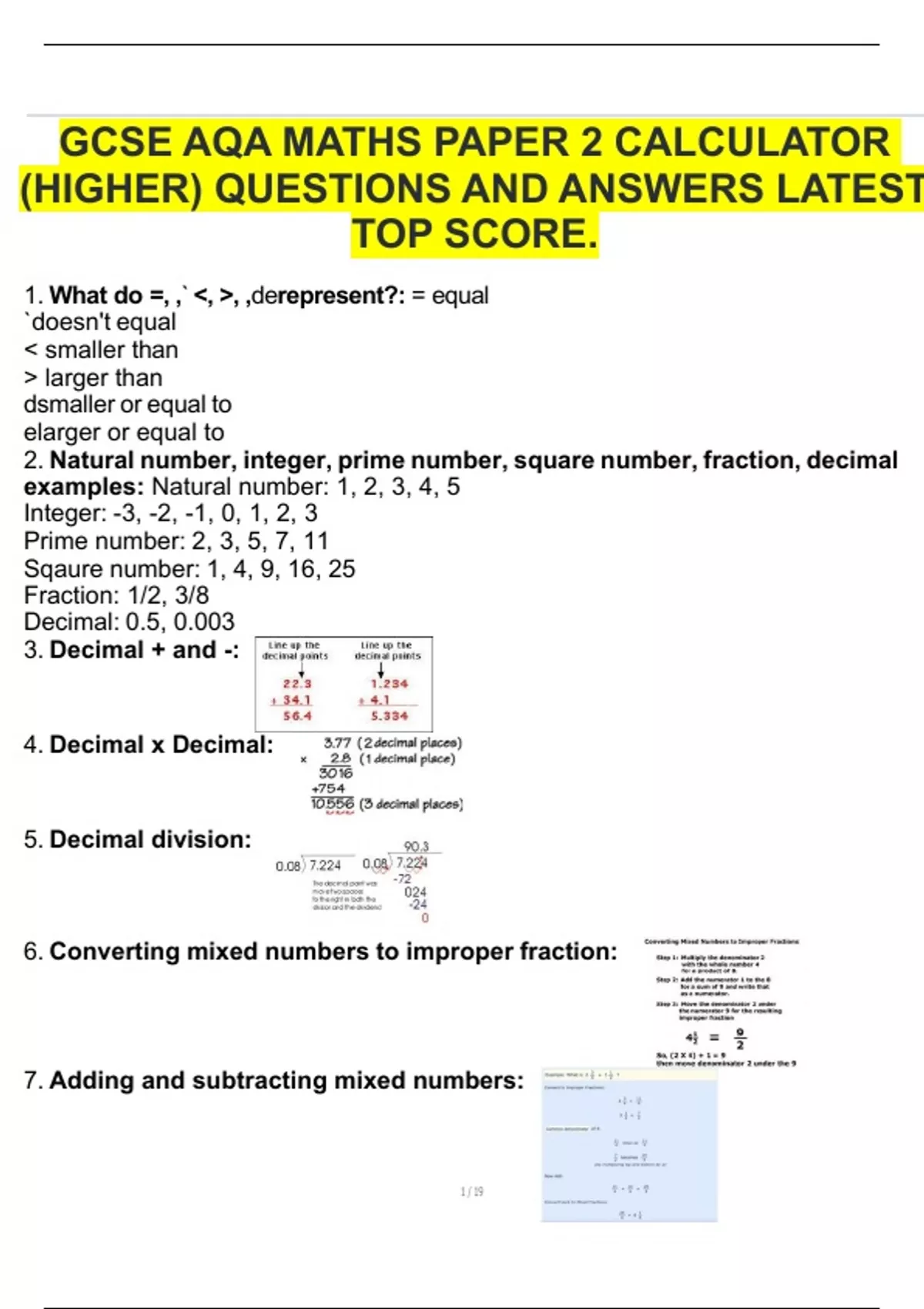 GCSE AQA MATHS PAPER 2 CALCULATOR (HIGHER) QUESTIONS AND ANSWERS LATEST TOP SCORE.