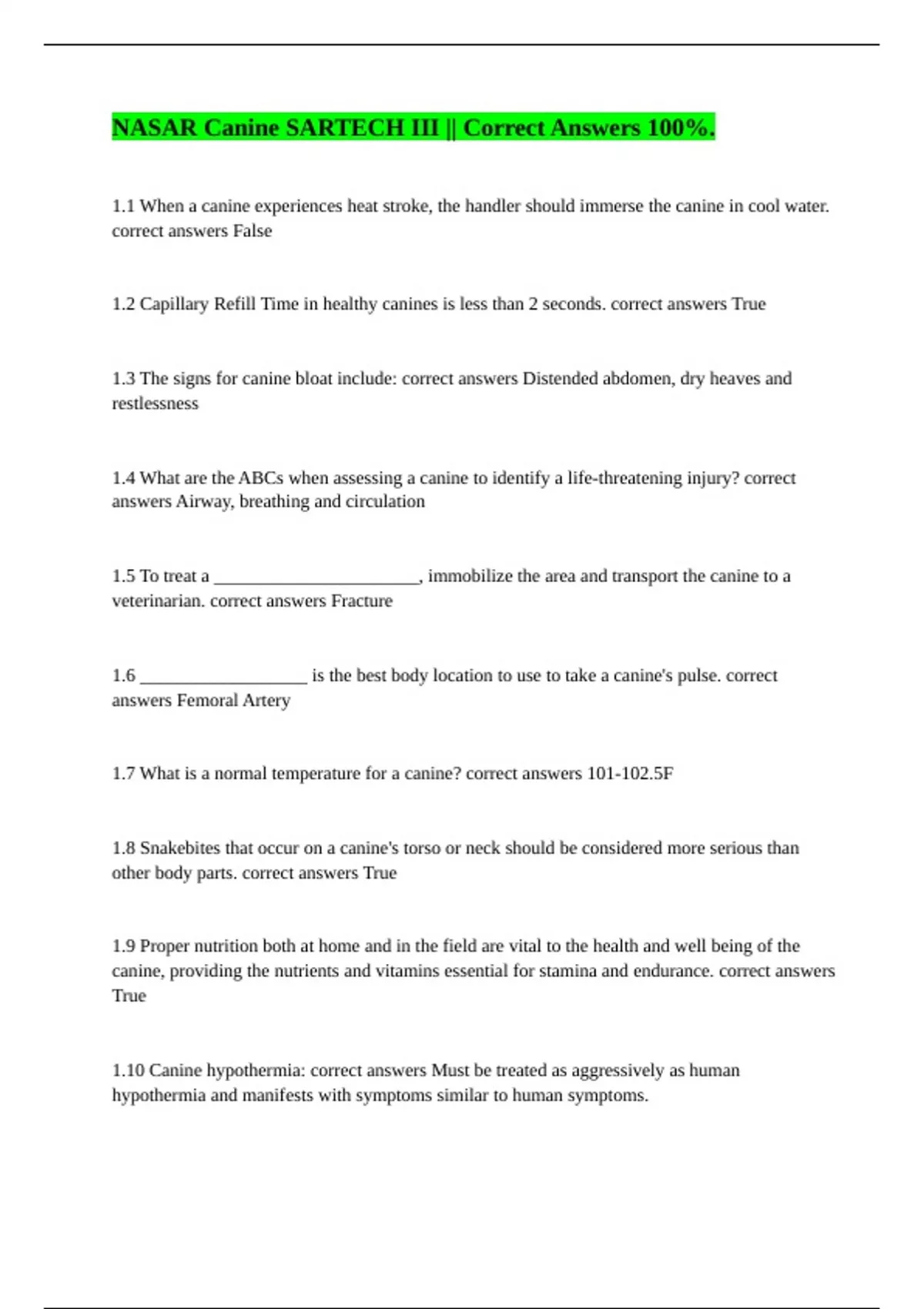 SAR Tech III study guide || 100% Verified Answers. SARTECH-III Practice Questions || All Answers are Valid. SARTECH IV / SAR Aware Examination || with 100% Correct Answers. SARTech II Questions || 100% Correct Answers. SARTECH I || WITH CERTIFIED ANSWERS. NASAR Canine SARTECH III || Correct Answers 100%. Sar tech II || Possible Questions Accurately