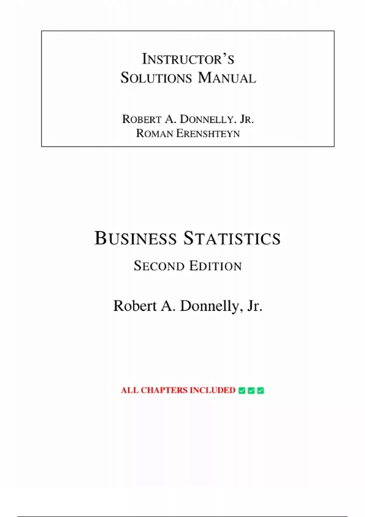 Instructor's Solutions Manual & Test Bank for Business Statistics 2nd Edition by Robert Donnelly Jr. |Chapter 1-18 ||PACKAGE DEAL!!!