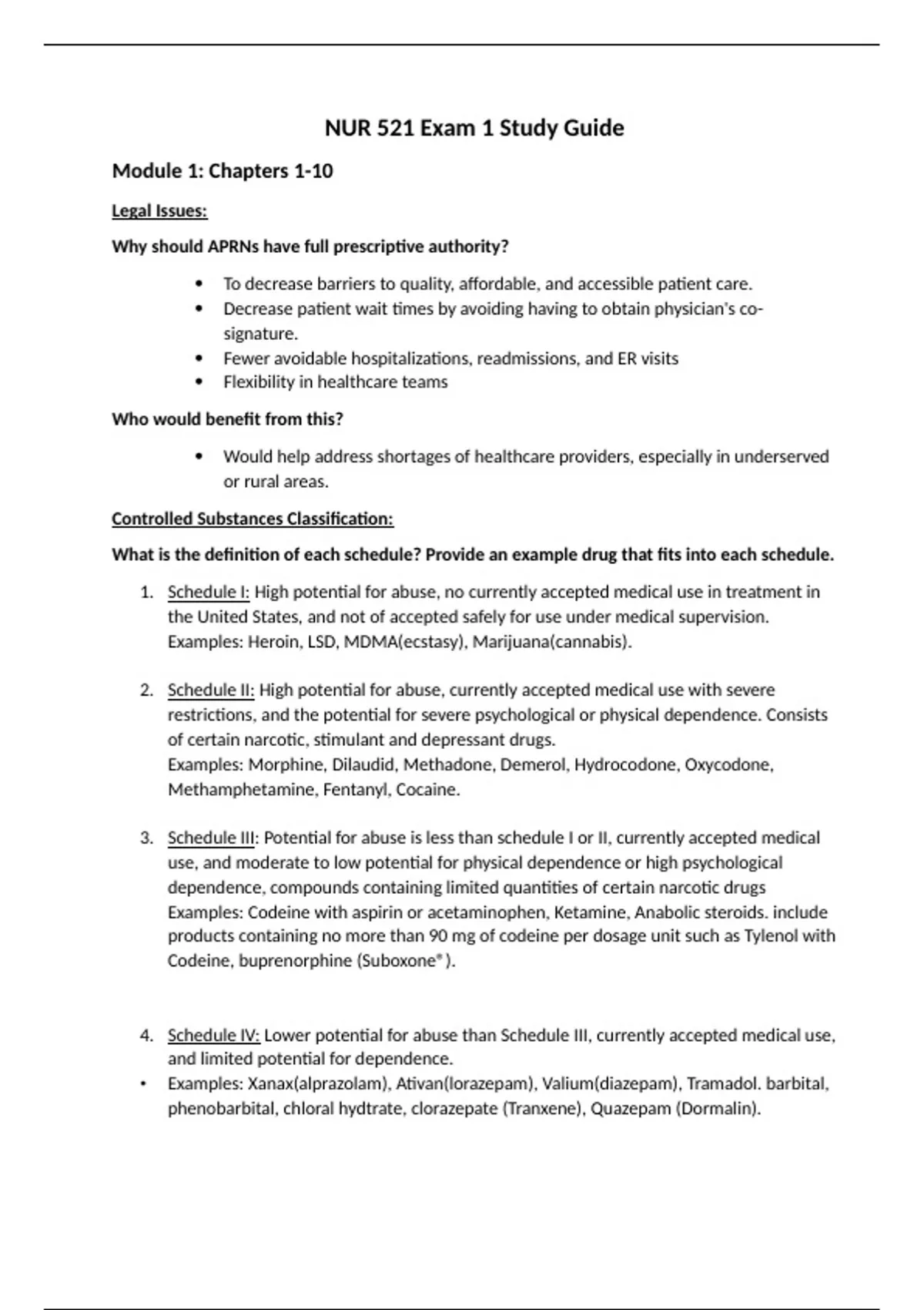NUR 521 Exam 1 Study Guide Part 1 – The University of Alabama – Capstone College of Nursing (2024) – Comprehensive Review of Legal, Pharmacological, and Clinical Concepts