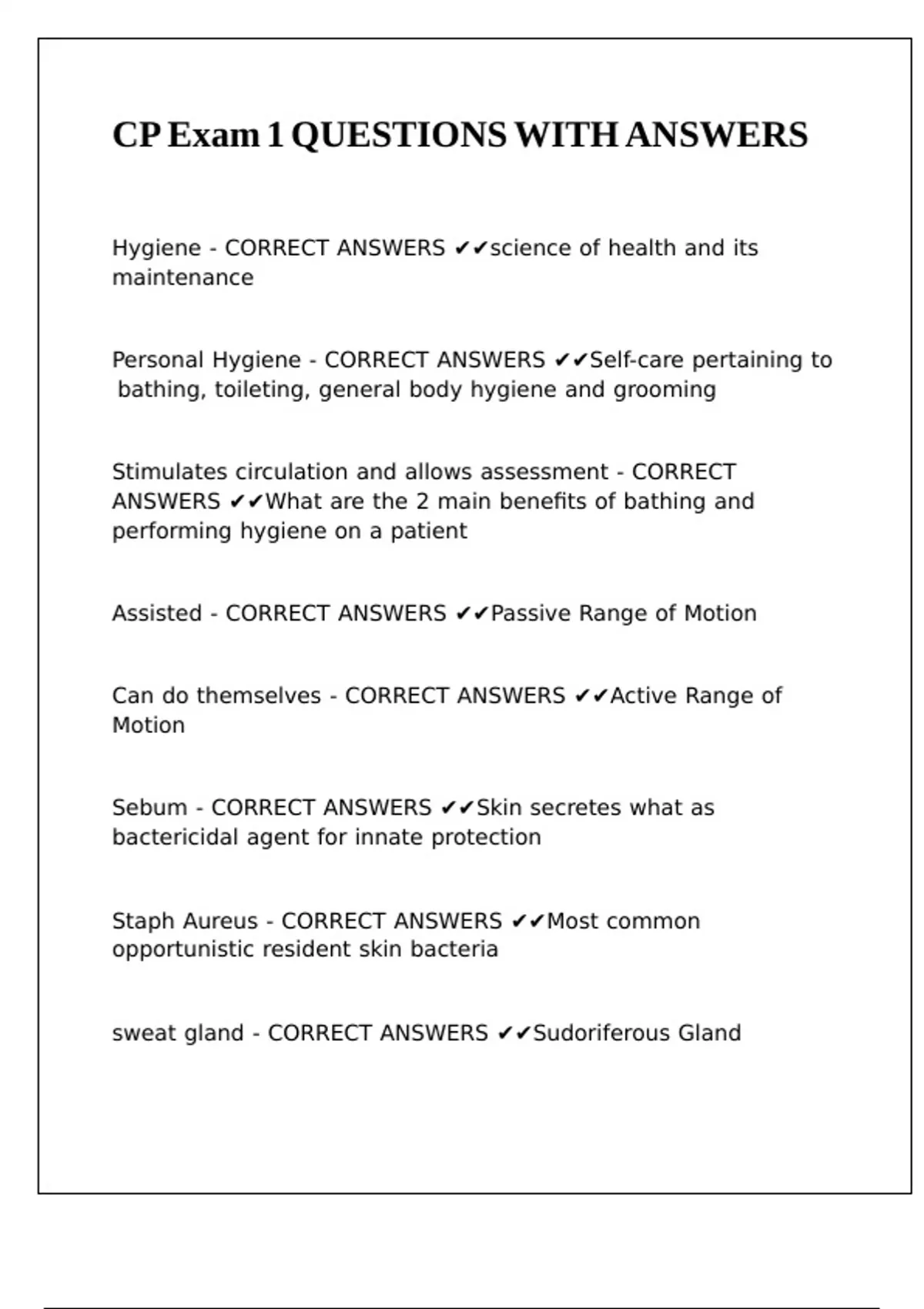 CP EXAM REVIEW QUESTIONS WITH ANSWERS