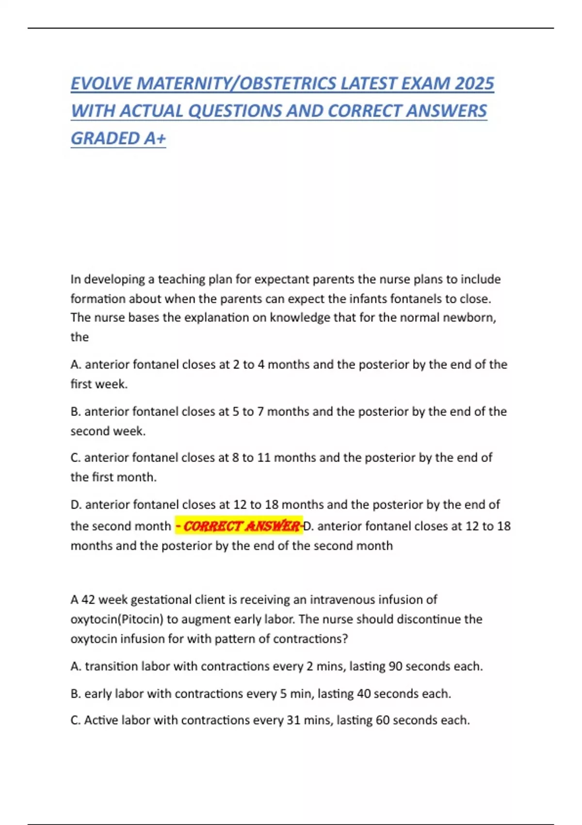 2025 Evolve Maternity/ Obstetrics Exam Test Bank (BUNDLE) Evolve Maternity/ Obstetrics Exam Test Bank (BUNDLE) Evolve Maternity/ Obstetrics Exam Test Bank (BUNDLE)