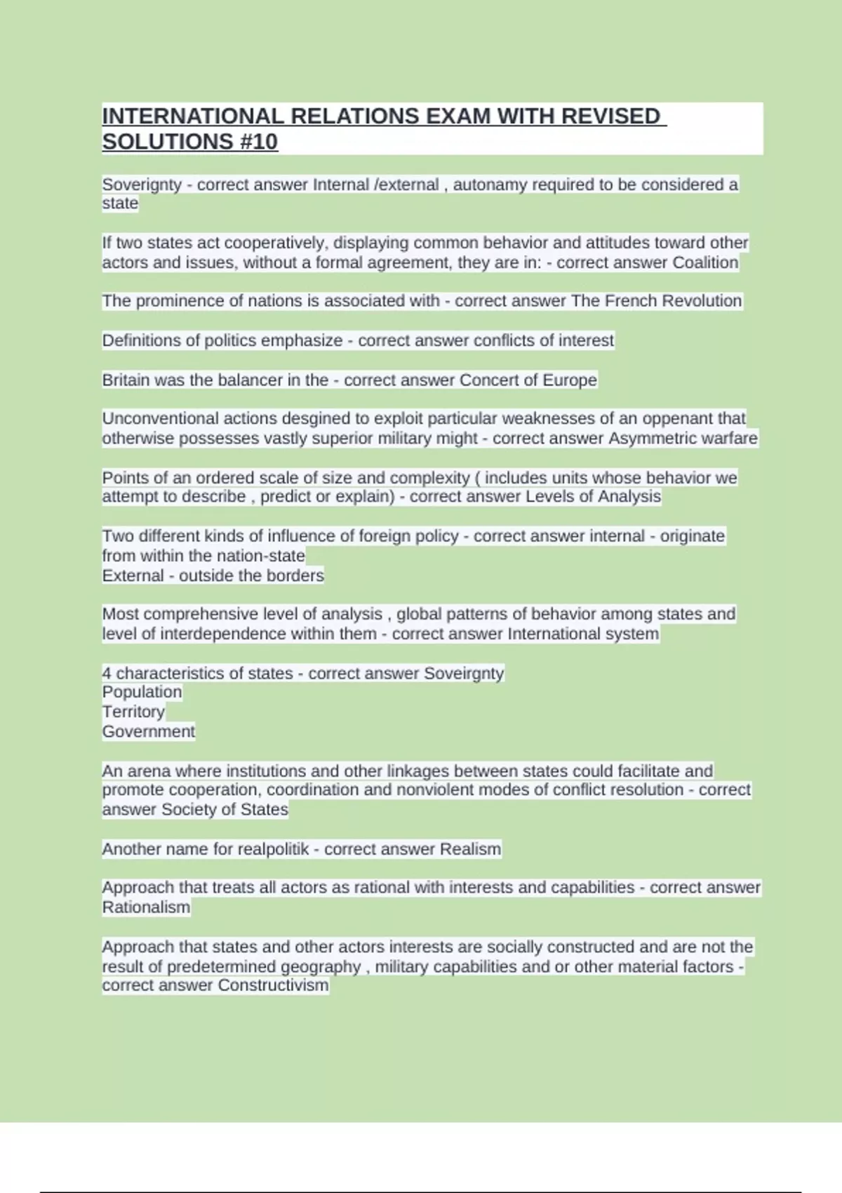 INTERNATIONAL RELATIONS EXAM PACK WITH APPROVED, VERIFIED AND UPADTED CONTENT 2025