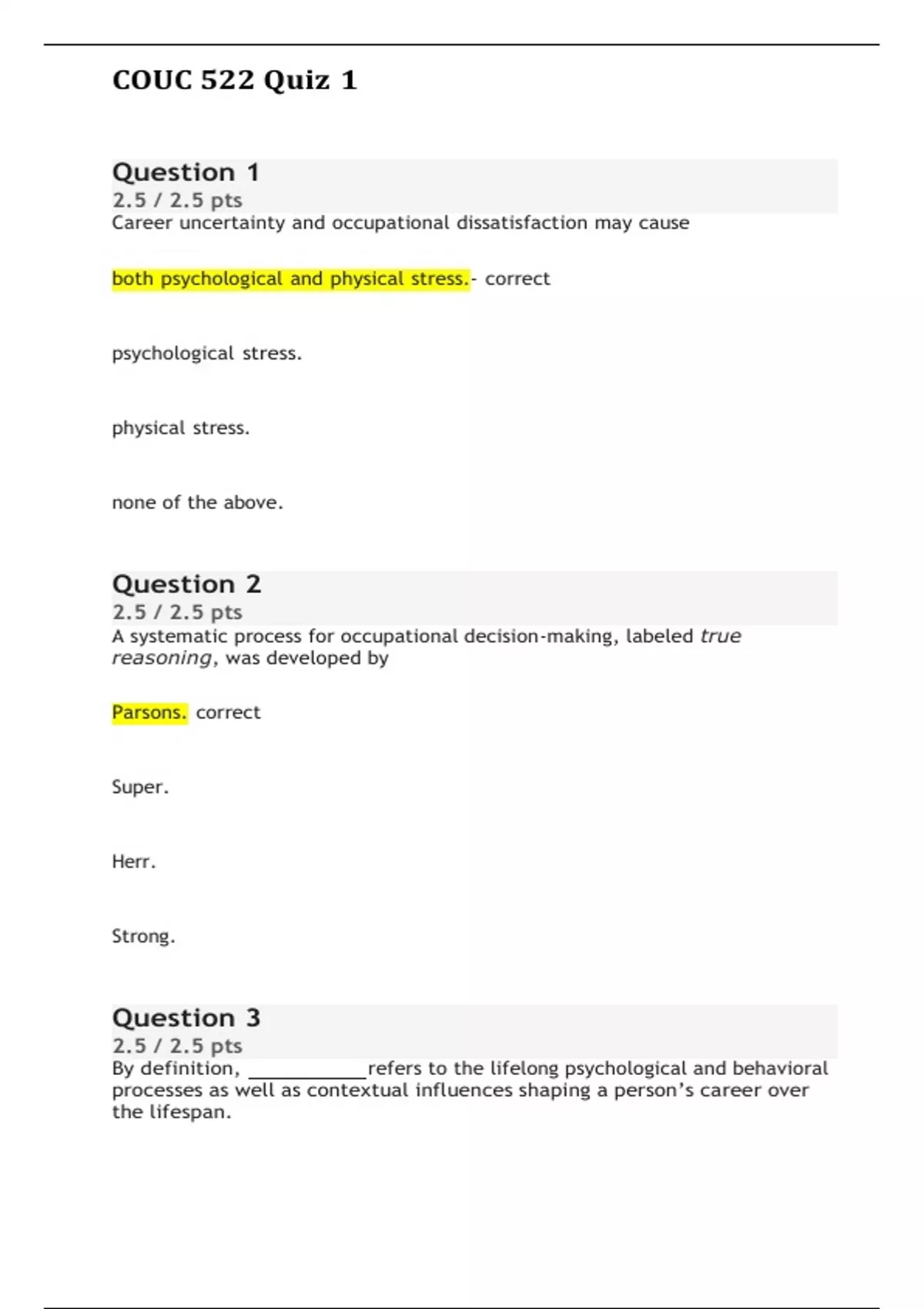 COUC 522 QUIZZES 1 - 8 PACKAGE | LIBERTY UNIVERSITY