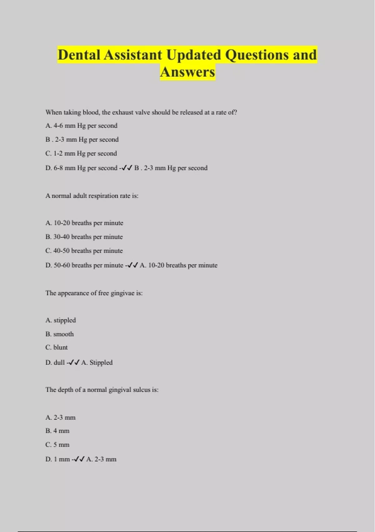 Dental Assisting Bundled Exam Questions WITH CORRECT Answers