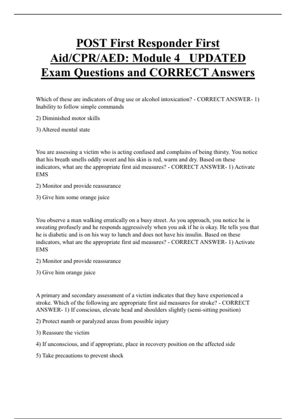 First Responder Bundled Exam Questions WITH CORRECT Answers