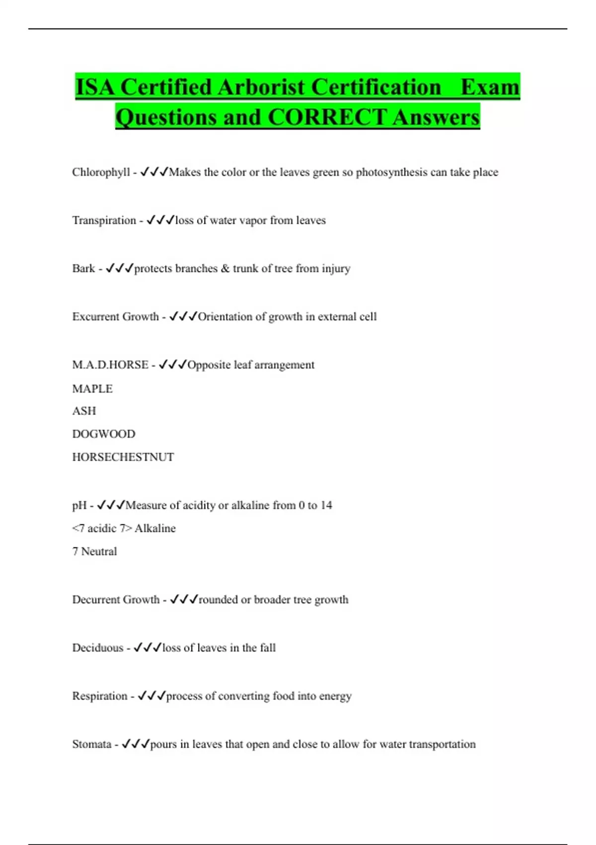 ISA Arborist Bundled Exam Questions WITH CORRECT Answers