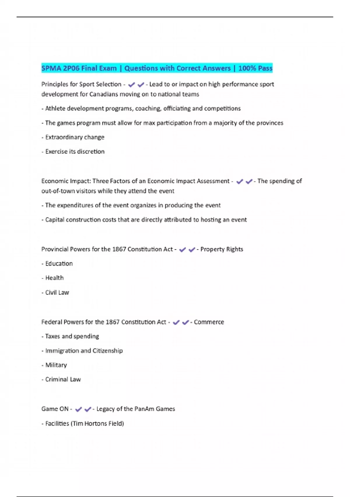 EXAMS BUNDLE PACKAGE:::::SPMA 2P06 | Questions with Correct Answers | 100% Pass