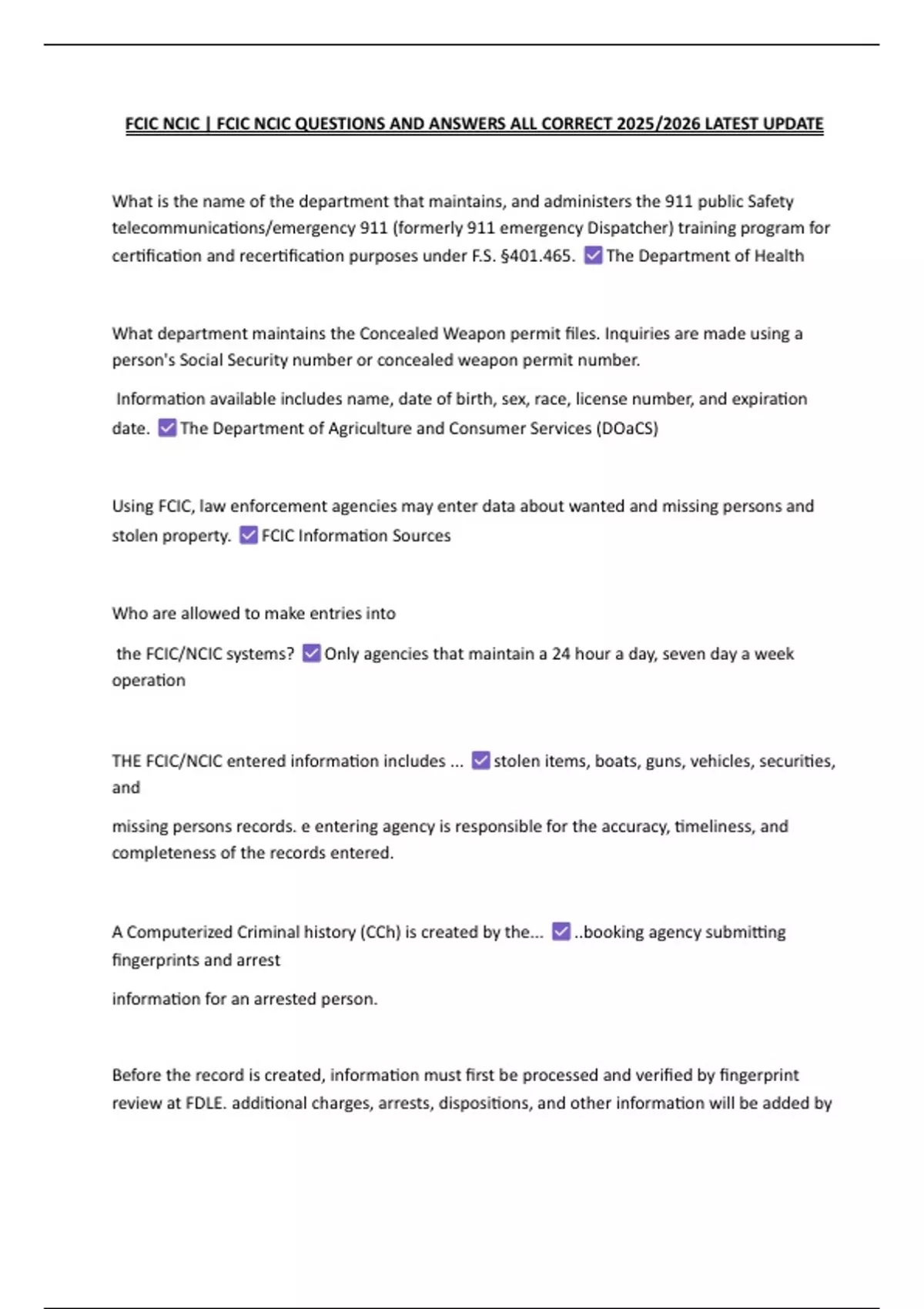 PACKAGE-::NCIC EXAMS WITH COMPLETE SOLUTIONS|LATEST UPDATE