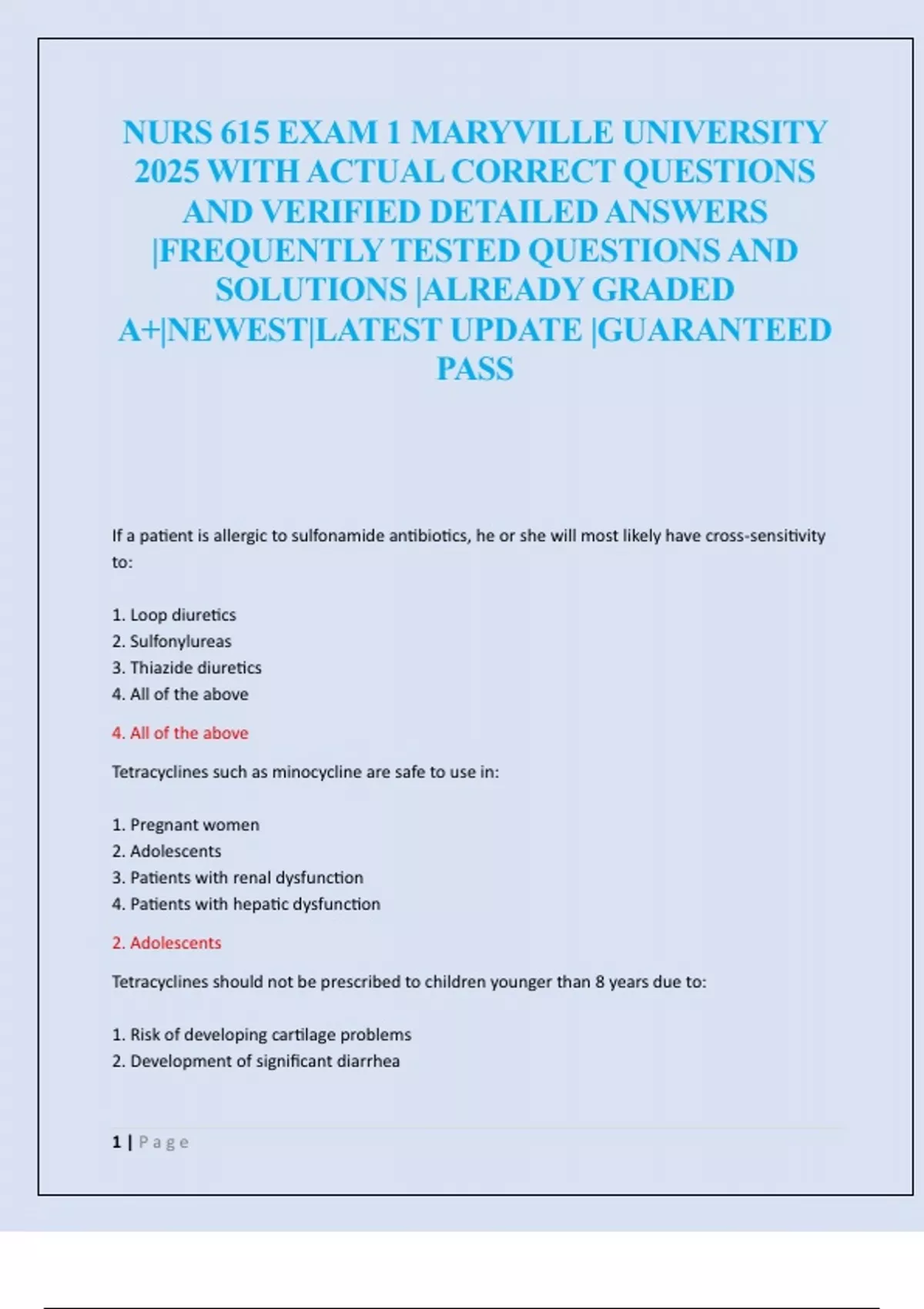 NURS 615 EXAM 1,2,3,4 AND FINAL MARYVILLE UNIVERSITY 2025 WITH ACTUAL CORRECT QUESTIONS AND VERIFIED DETAILED ANSWERS |FREQUENTLY TESTED QUESTIONS AND SOLUTIONS |ALREADY GRADED A+|NEWEST|LATEST UPDATE |GUARANTEED PASS
