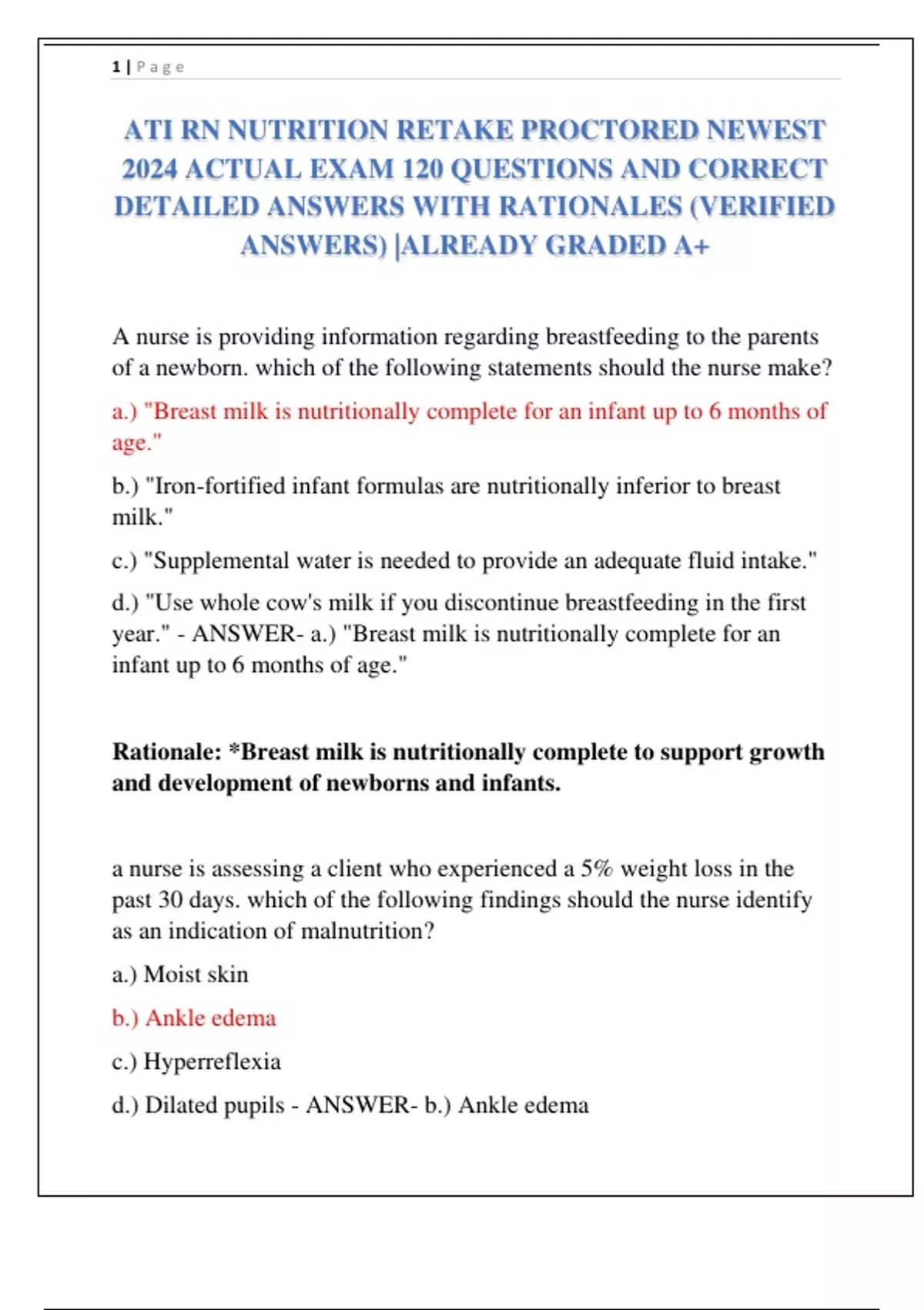NUTRITION ATI PROCTORED BUNDLED EXAMS NEWEST VERSIONS 2025/2026 ACTUAL EXAMS COMPLETE QUESTIONS AND CORRECT DETAILED ANSWERS (VERIFIED ANSWERS) |ALREADY GRADED A+