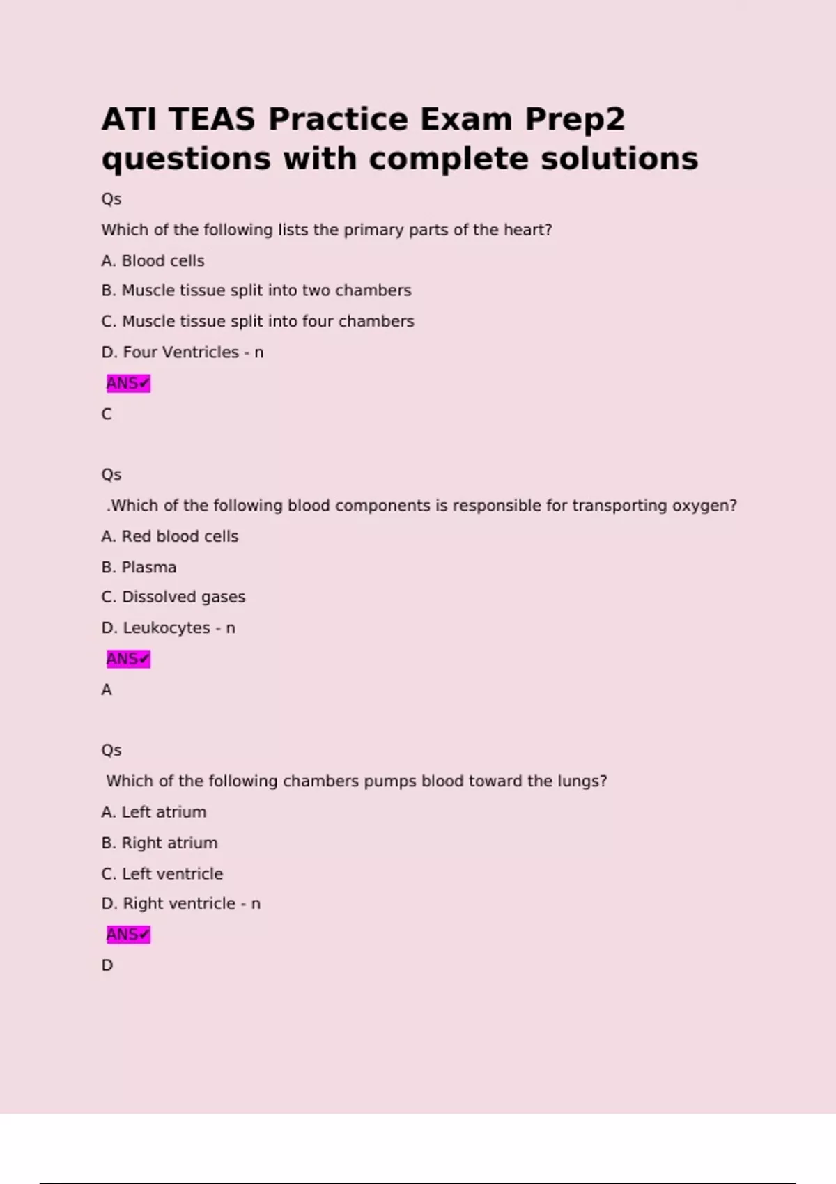 Exam (elaborations) ATI TEAS 2023 Practice Test questions with verified solutions Qs Which of the following glands is found on top of the kidneys? - Thyroid - Pituitary - Adrenal - Pancreas - n ANS Adrenal Qs Seaweed - Snail - Fish - Dolphin Using the food 2 Exam (elaborations) ATI TEAS 2023 Practice Test questions with verified solutions Qs Homeo