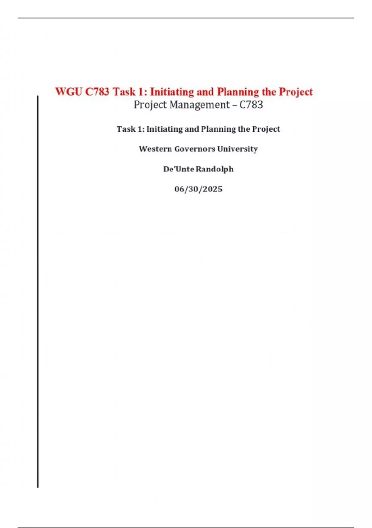 WGU C783 Task 1: Initiating and Planning the Project | 2025 Latest Update with complete solutions. WGU C783 AHN2 TASK 2: Executing Monitoring and Controlling the Project | 2025 Latest Update with complete solutions. WGU C783 AHN2 Task 3 | project closure | 2025 Latest Update Complete.