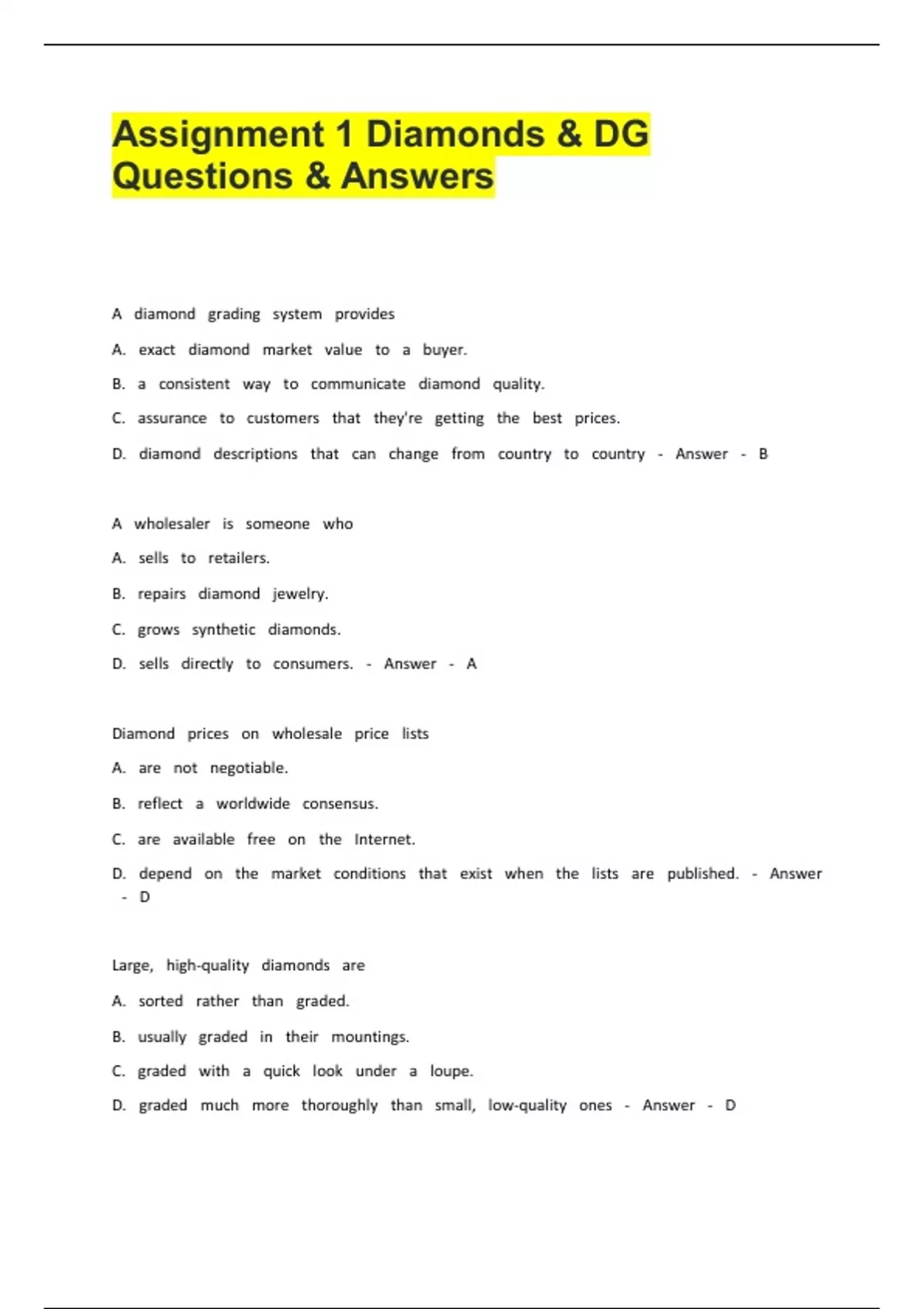 Many students don\'t have the time to work on their academic papers due to balancing with other responsibilities, for example, part-time work. I can relate. kindly don\'t hesitate to contact me, my study guides, notes and exams or test banks, are 100% graded SUCCESS IN YOUR STUDIES.......WELCOME ALL....