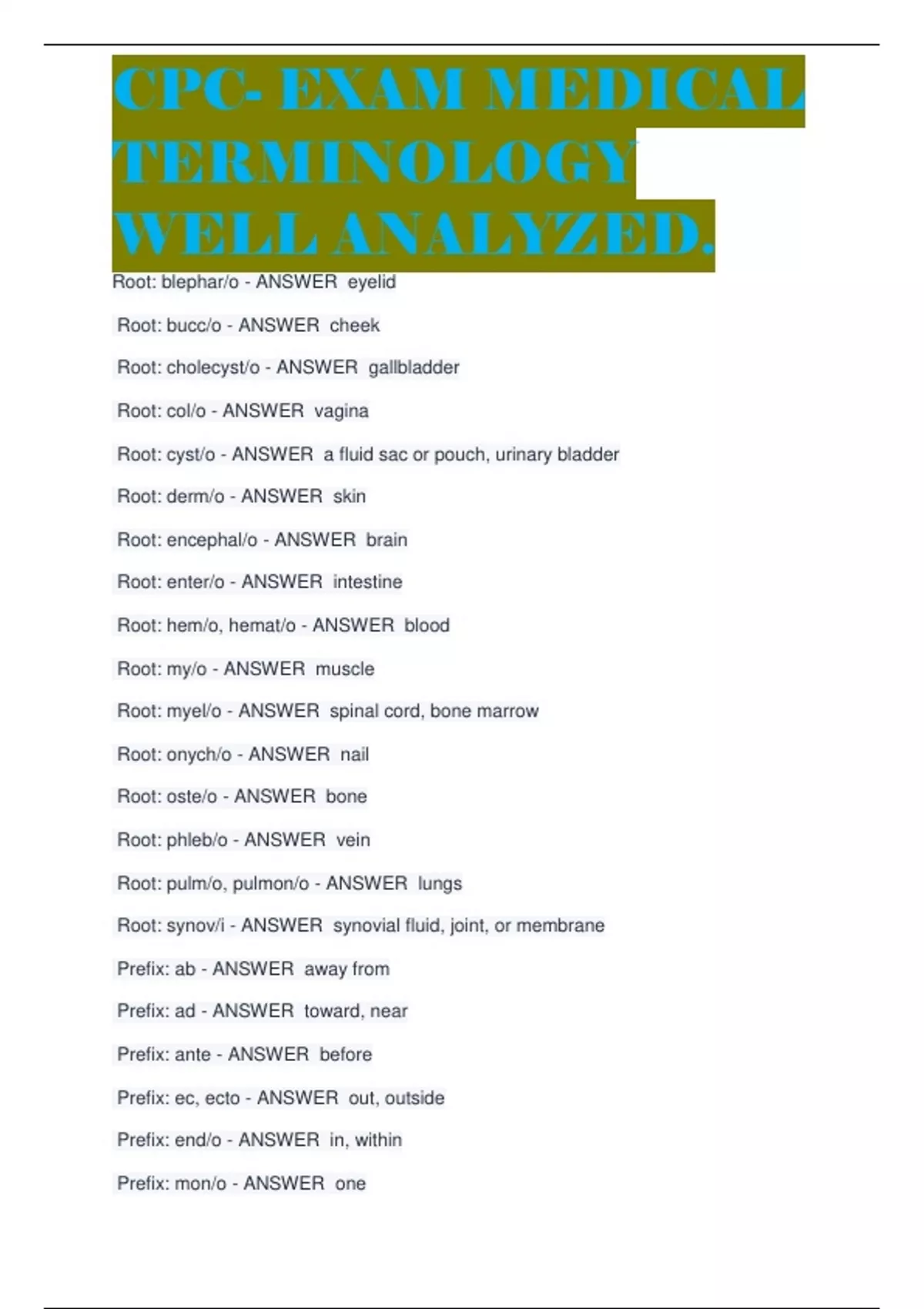 cpc exam package with questions and well analysed answers guaranted A+ buy this package and save more