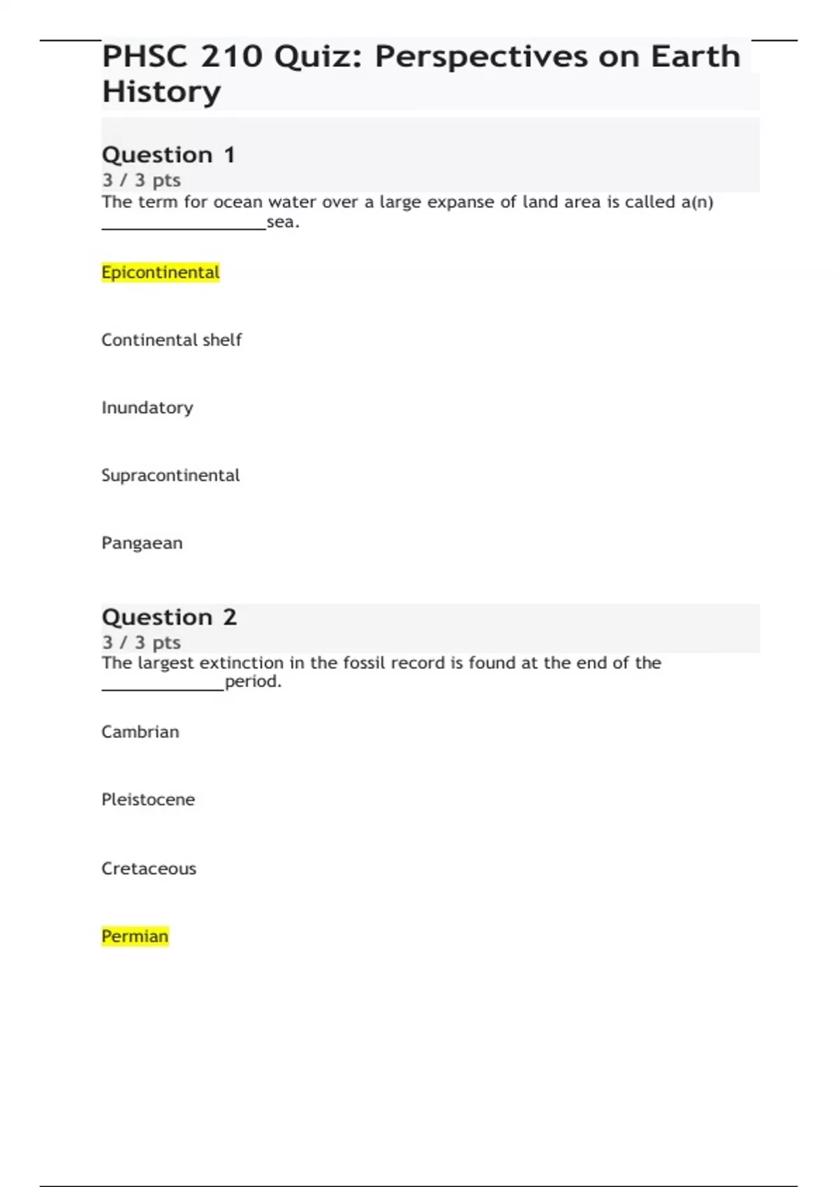 PHSC 210 Quiz: Presentation Earth History | Liberty University
