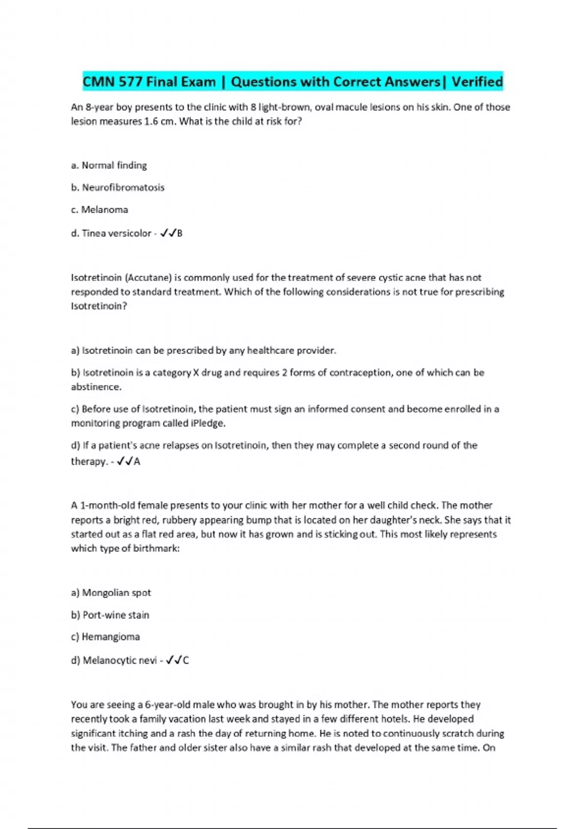 EXAMS BUNDLE PACKAGE:::::CMN 577 | Questions with Correct Answers | 100% Pass