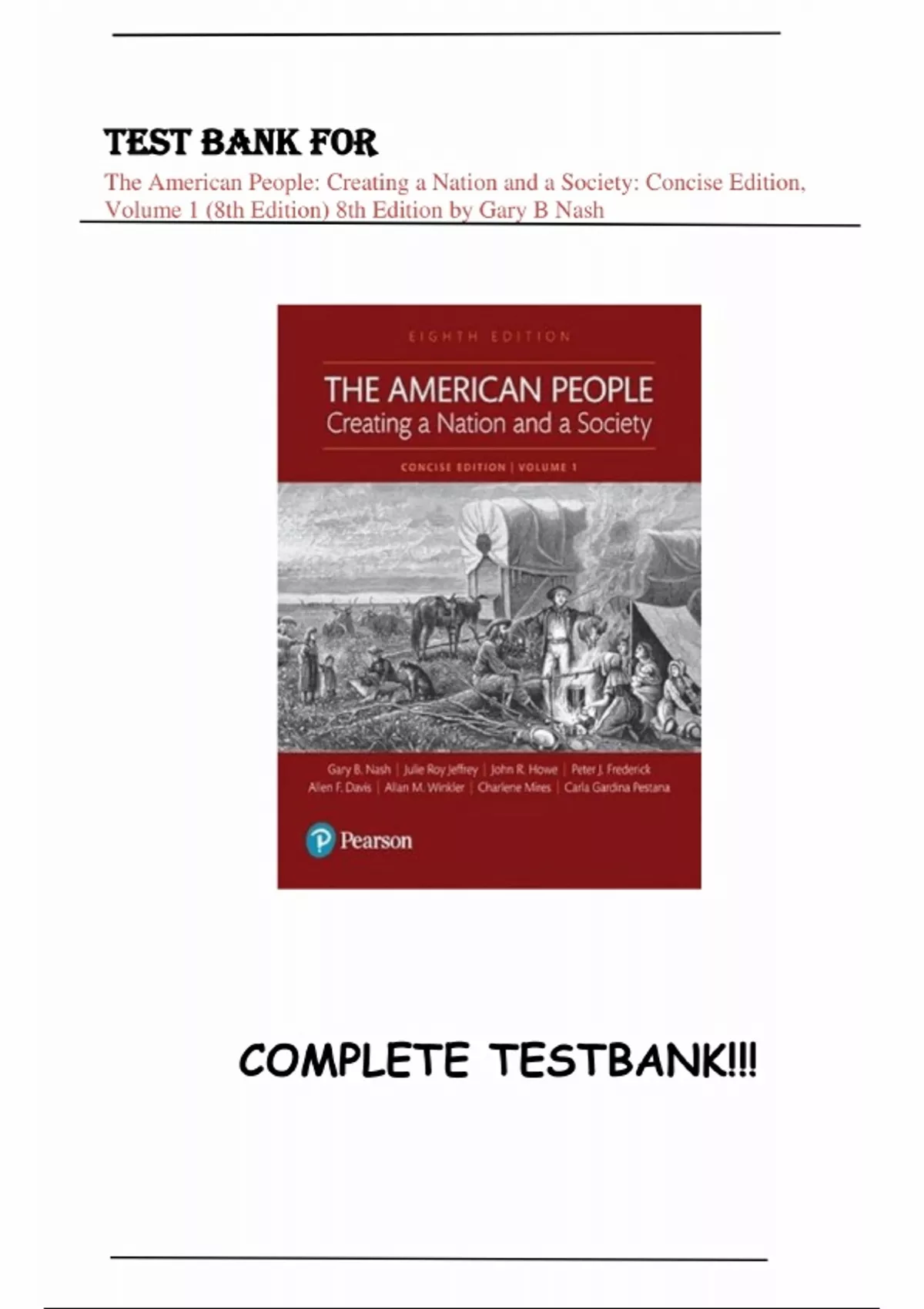 Test Bank for The American People: Creating a Nation and a Society: Concise Edition, Volume 1 & Volume 2 (8th Edition)by Gary B Nash |PACKAGE DEAL!!!