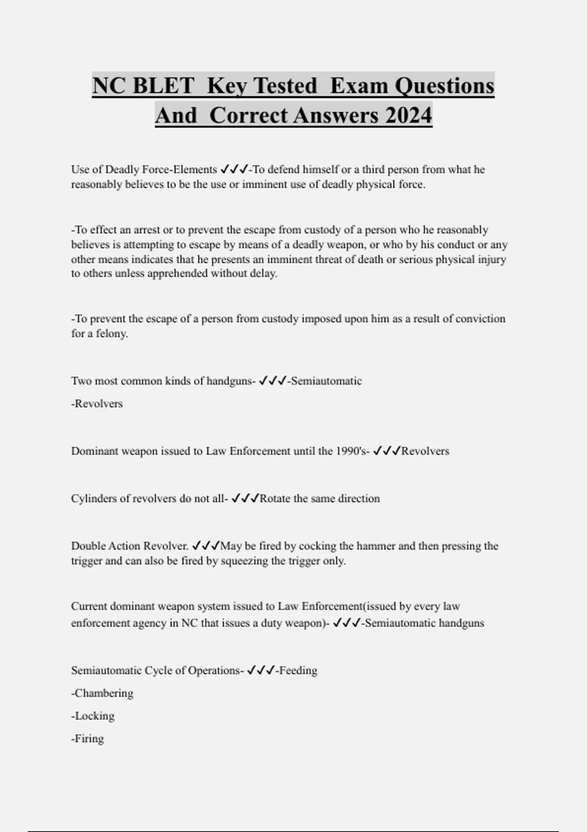 NC BLET Bundled Exam Questions WITH CORRECT Answers