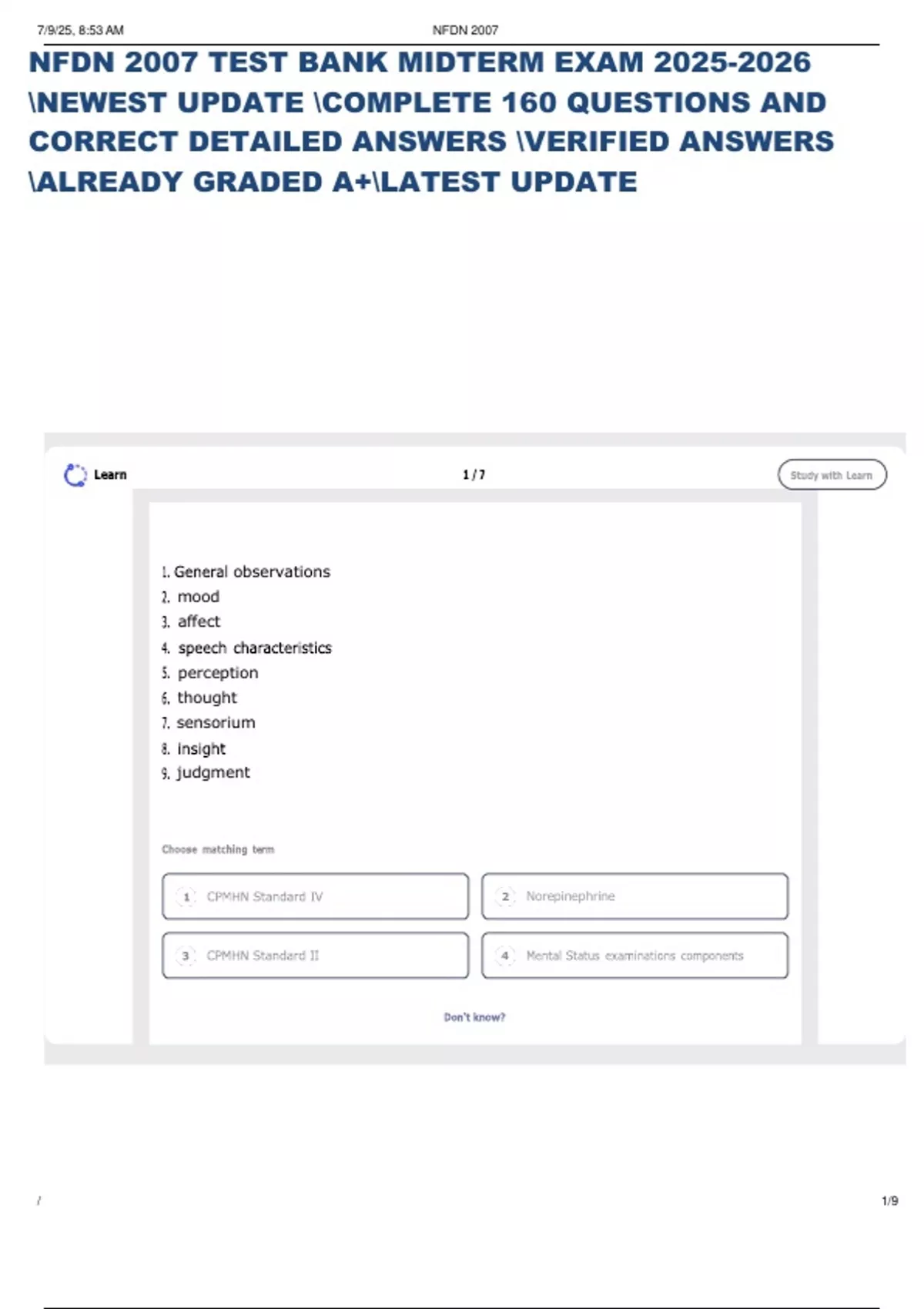 Exam (elaborations) NFDN 2007 test bank exams LATEST UPDATE COMPLETE QUESTIONS AND CORRECT DETAILED ANSWERS VERIFIED 100% GRADED A+ Exam (elaborations) NFDN 2007 test bank exams LATEST UPDATE COMPLETE QUESTIONS AND CORRECT DETAILED ANSWERS VERIFIED 100% GRADED A+