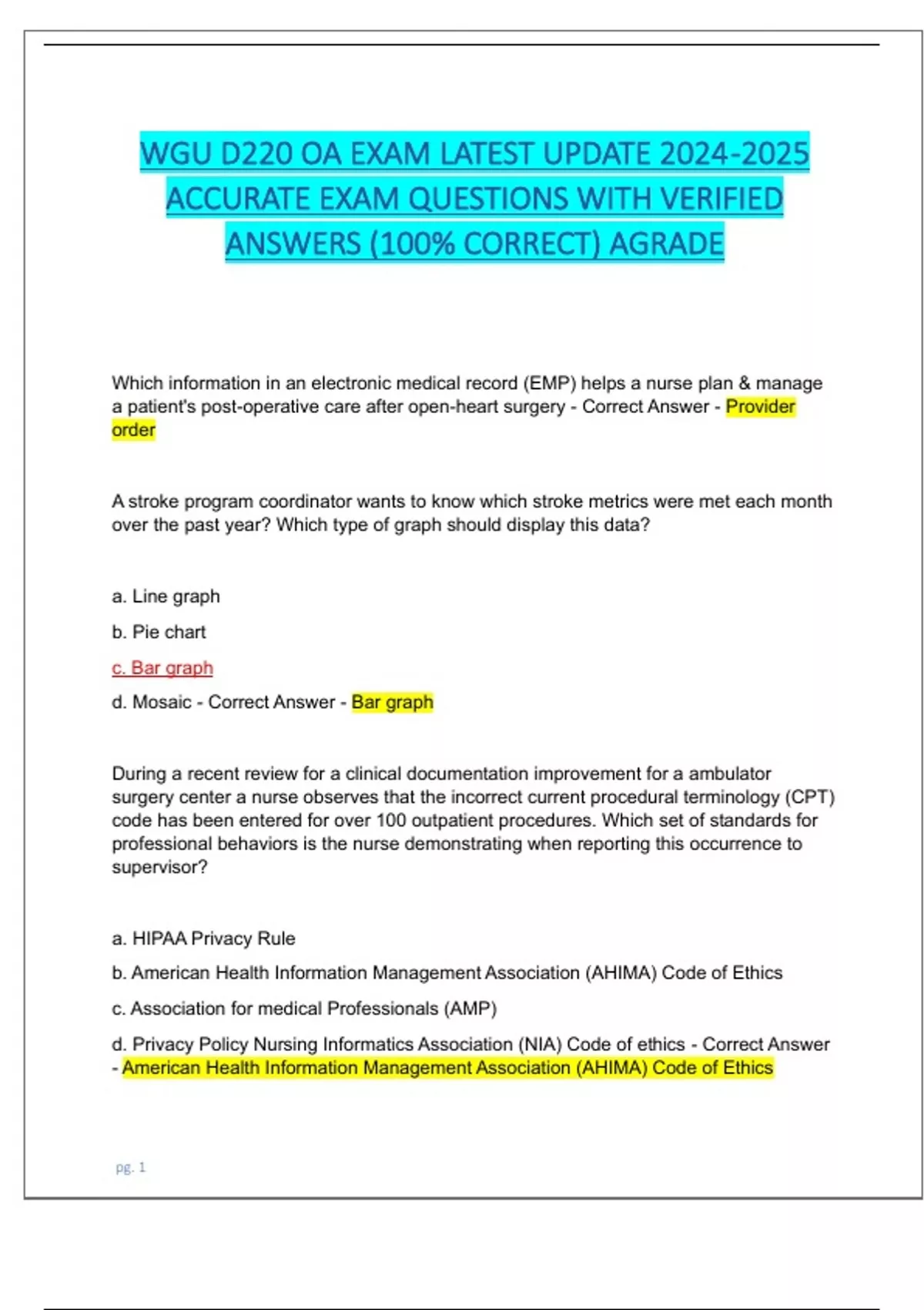 WGU D220 OBJECTIVE ASSESSMENT V1 & V2 EXAMS NEWEST 2025 PACKAGE DEAL| 2 LATEST VERSIONS WITH COMPLETE EXAM QUESTIONS AND CORRECT DETAILED ANSWERS (VERIFIED ANSWERS) ALREADY GRADED A | INFORMATION TECHNOLOGY IN NURSING PRACTICE OA EXAM 2025|| BRAND NEW!!