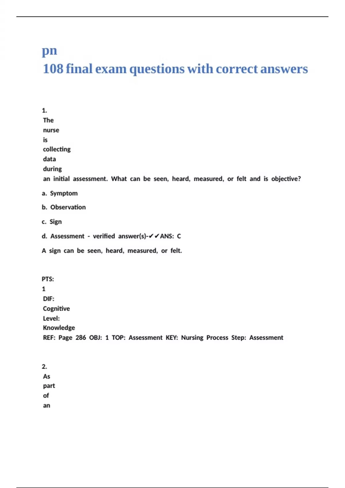 pn 108 final exam questions with correct answers