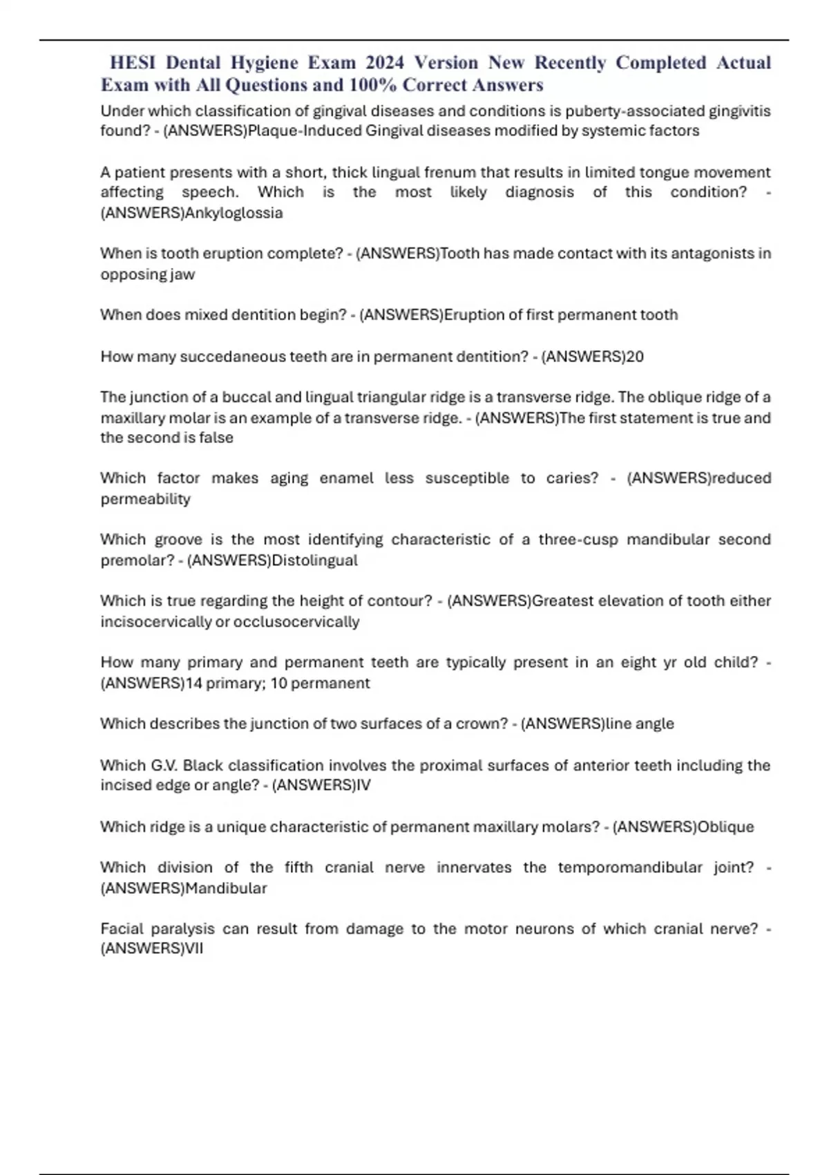 Dental Hygiene - HESI test review Exam with 100% Correct Answers 2023