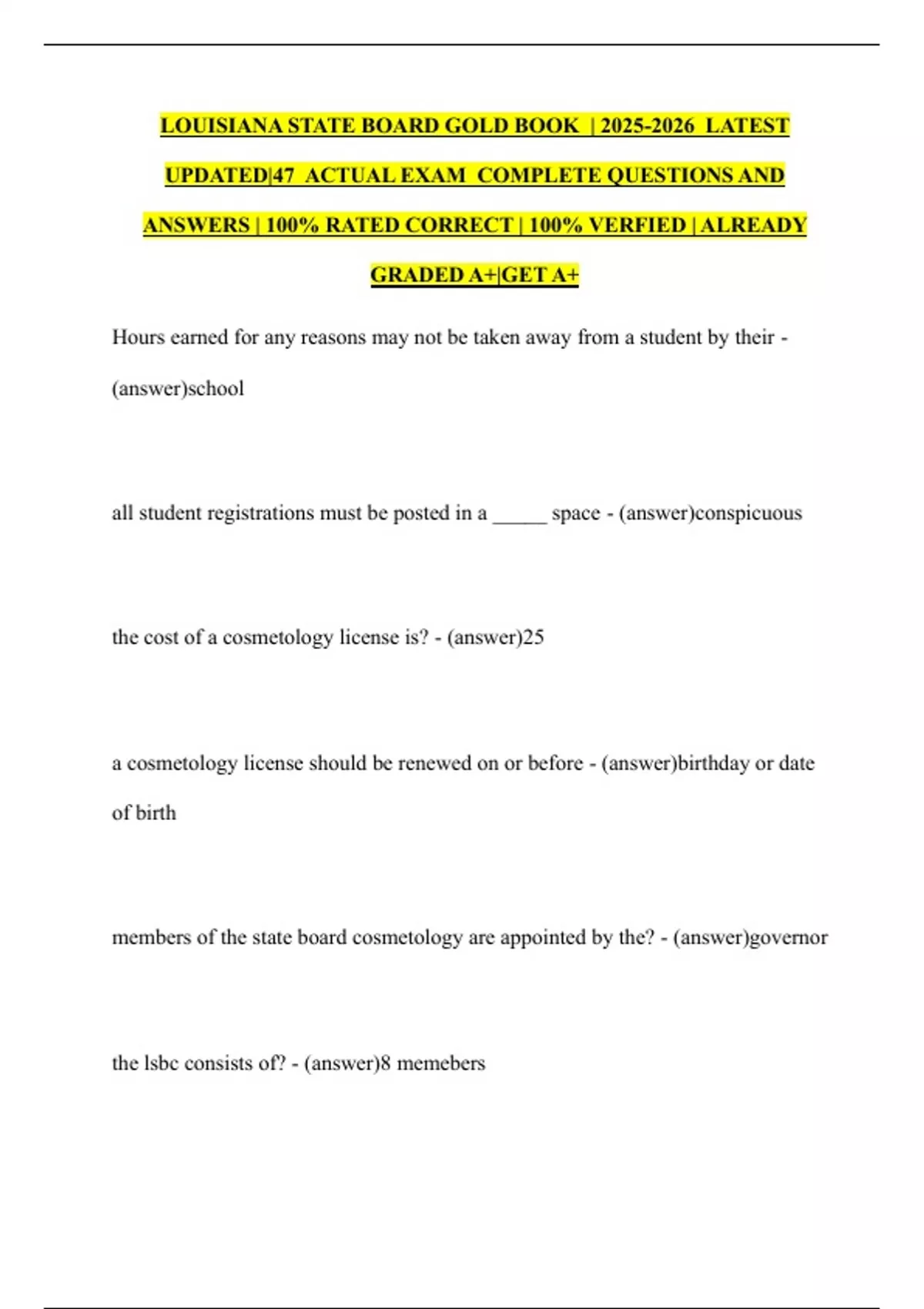 PACKAGE DEAL FOR GOLD BOOK LOUISIANA STATE BOARD COMPLETE QUESTIONS AND ANSWERS | GET A