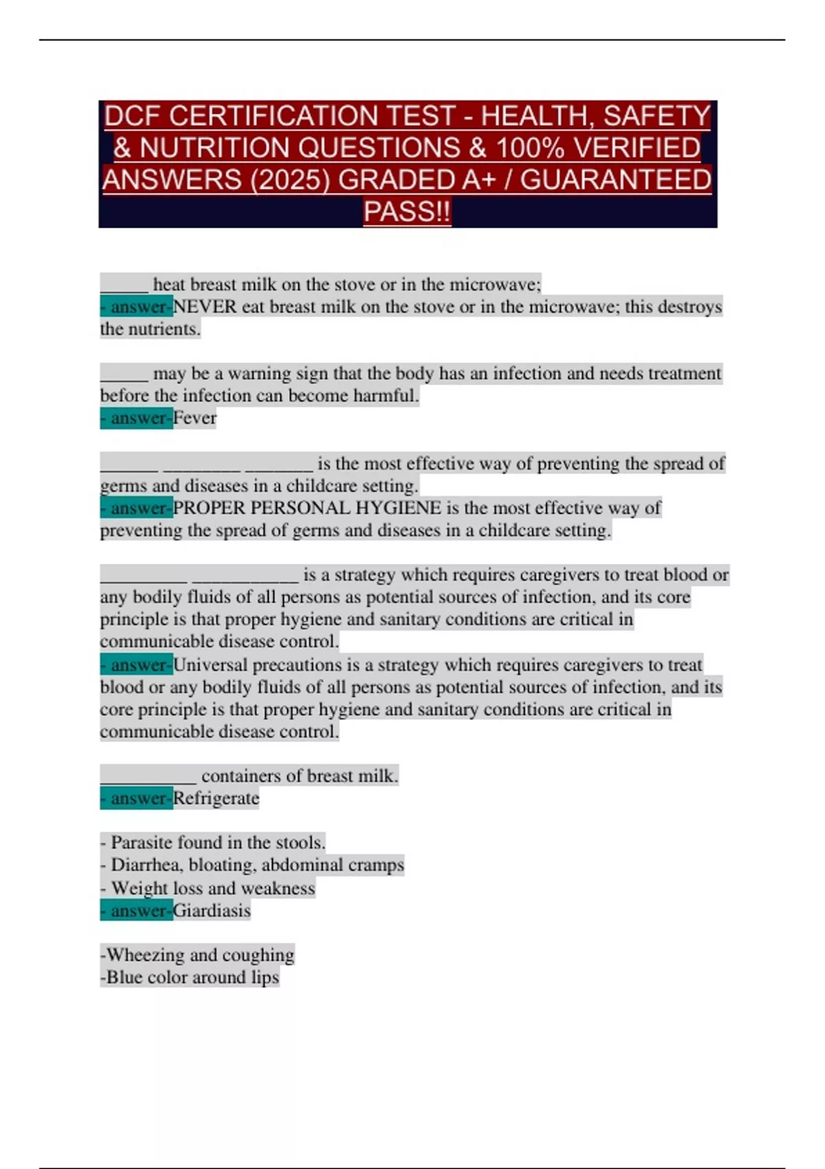 DCF Health(ECE-203), Safety & Nutrition 500+ Q&A (2025) – Guaranteed Pass! Exam-Ready Study Guide DCF Health(ECE-203), Safety & Nutrition 500+ Q&A (2025) – Guaranteed Pass! Exam-Ready Study Guide DCF Health(ECE-203), Safety & Nutrition 500+ Q&A (2025) – Guaranteed Pass! Exam-Ready Study Guide DCF Health(ECE-203), Safety & Nutrition 500+ Q&A (2025)