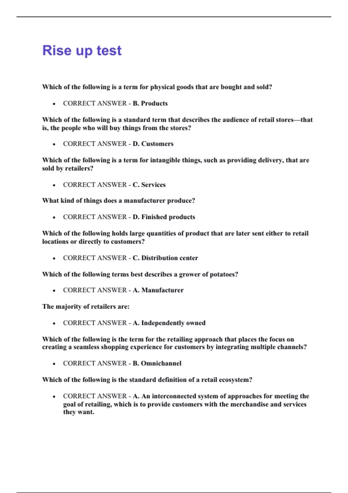 Rise Up Retail Industry Fundamentals Questions And Correct Answers |100% Verified |Guaranteed Success | 2025 update
