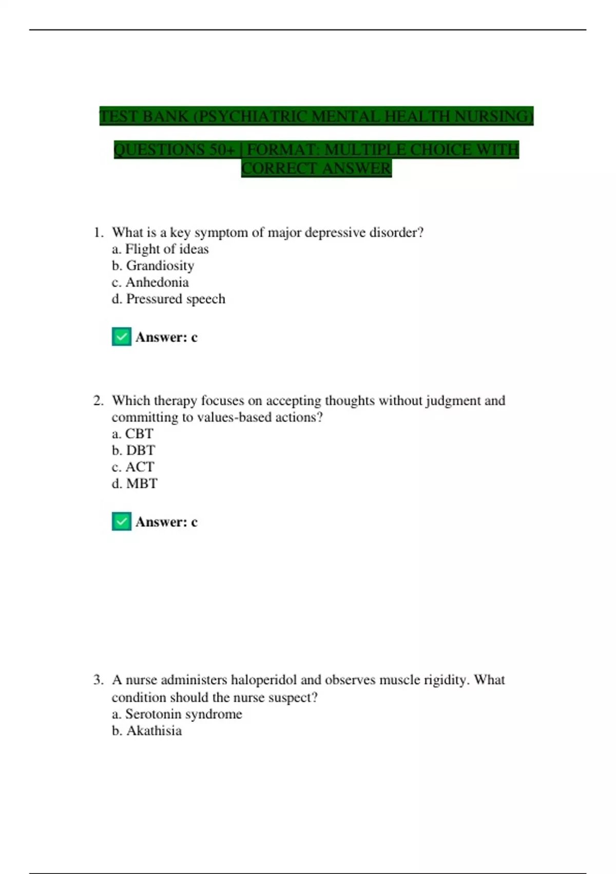 NR607 Advanced Psychiatric Mental Health Nurse Practitioner (PMHNP) Final Exam Review & Test Bank – 300+ Questions & Verified Answers (2025 Edition)