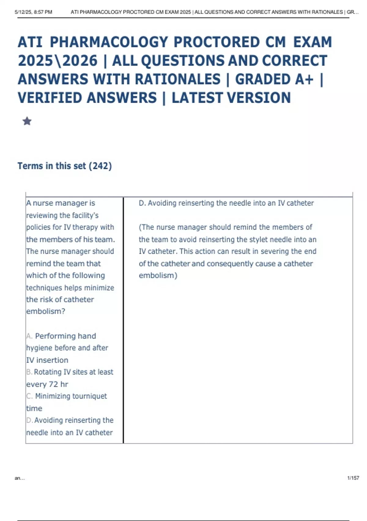 ATI PHARMACOLOGY PROCTORED CM EXAM | ALL QUESTIONS AND CORRECT ANSWERS WITH RATIONALES | GRADED A+ | VERIFIED ANSWERS | LATEST VERSION ATI PHARMACOLOGY PROCTORED CM EXAM | ALL QUESTIONS AND CORRECT ANSWERS WITH RATIONALES | GRADED A+ | VERIFIED ANSWERS | LATEST VERSION ATI PHARMACOLOGY PROCTORED CM EXAM | ALL QUESTIONS A