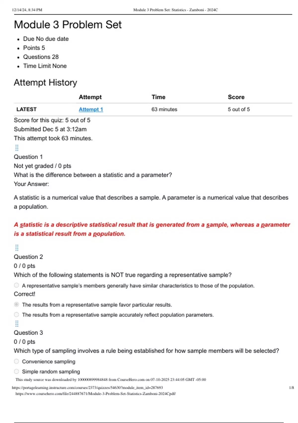 CNSL 503/ CNSL503 Module 3 & 4 Problem set Exams (Latest 2025/ 2026 Updates STUDY BUNDLE PACKAGE WITH SOLUTIONS) STATISTICS | Questions & Answers| Grade A| 100% Correct (Verified Solutions)- Portage