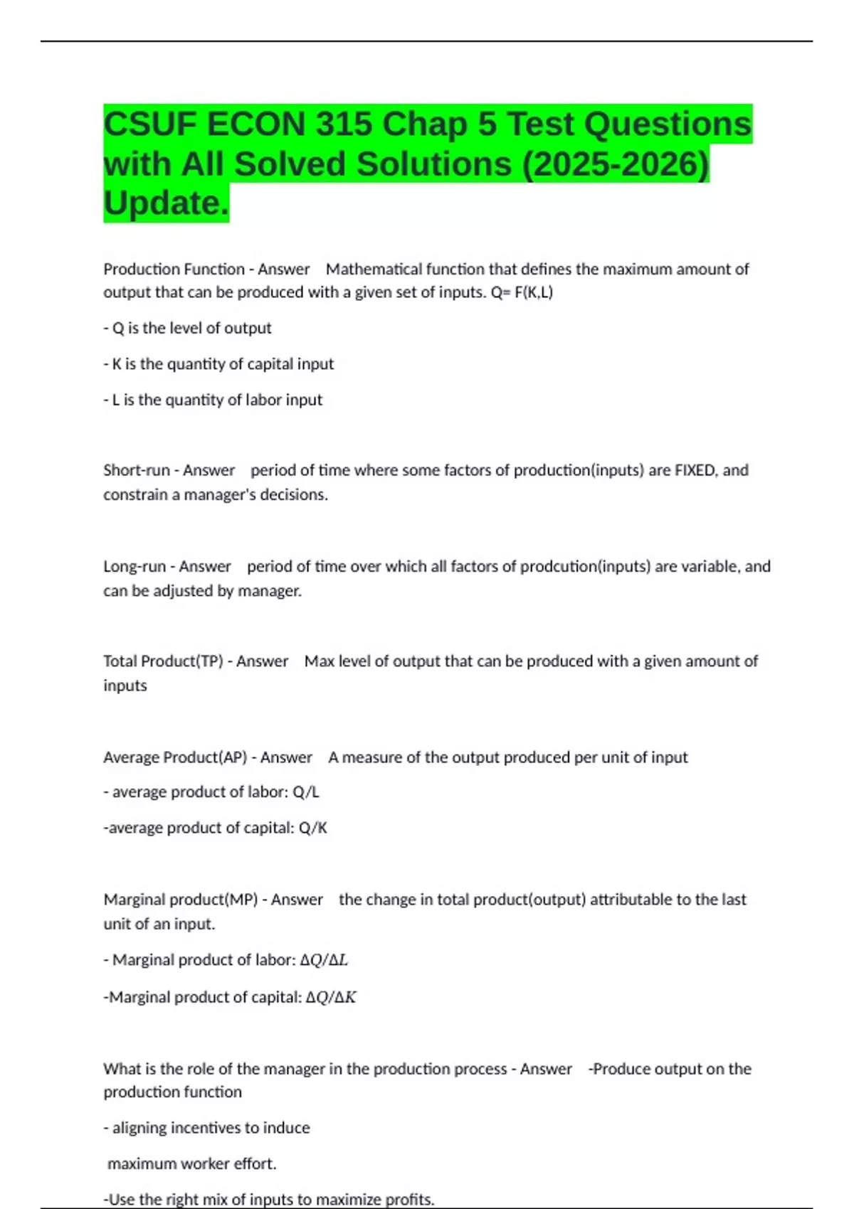 ECON 315 - Intermediate Business Microeconomics Exam Package Deal Bundle () Updated !!
